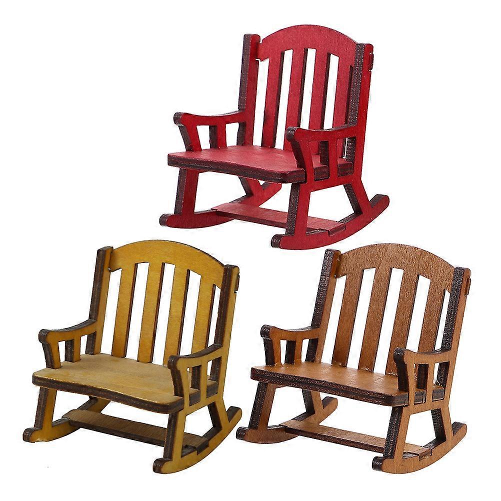 3pcs Miniature Wooden Rocking Chairs for Dollhouse Furniture Accessories, Tiny Armchair Models with Natural Finish for Fairy Garden and Micro