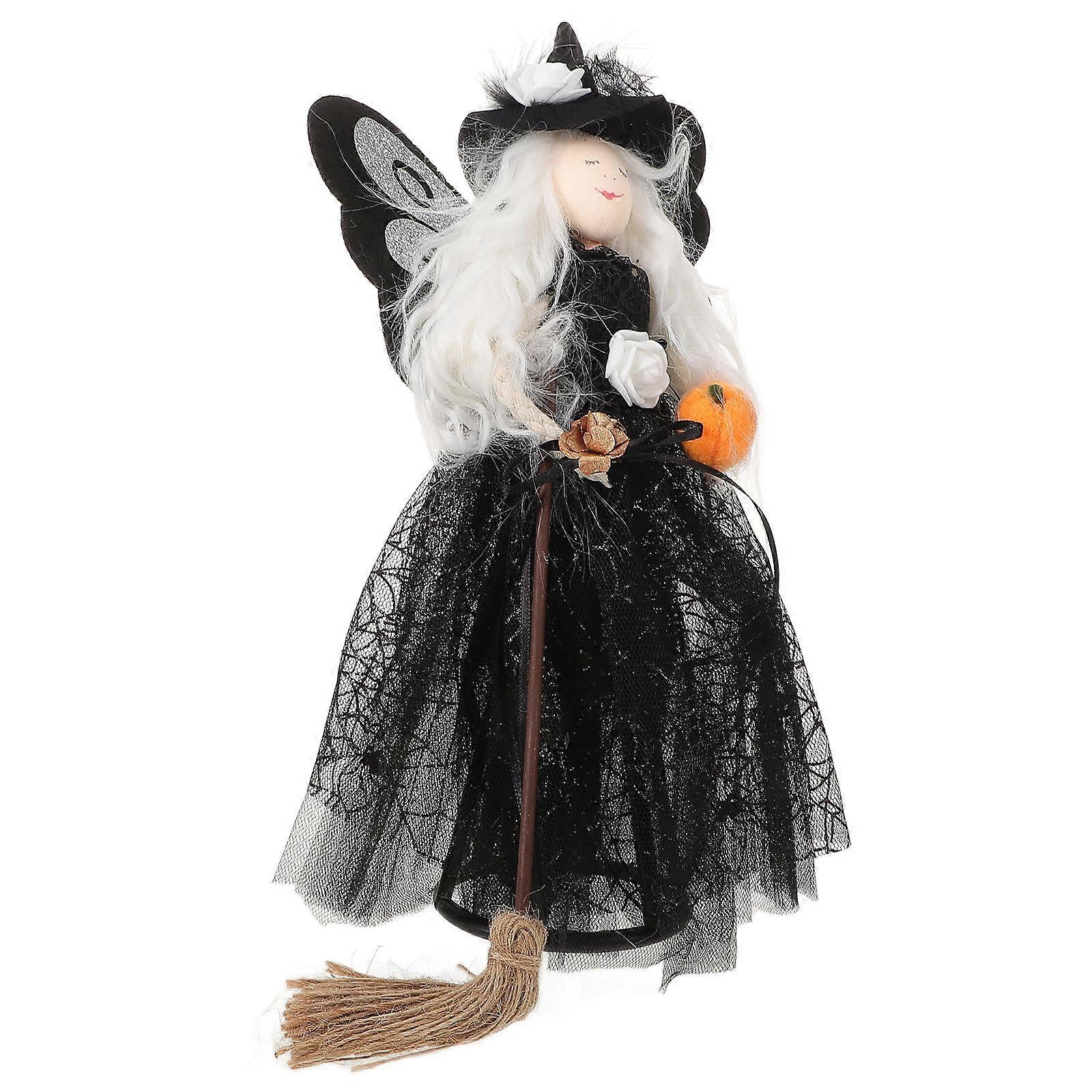 Spooky Halloween Witch Doll Tree Topper Unique Table Centerpiece for Parties & Home Office Decoration, Black Figurine for Friends and Family