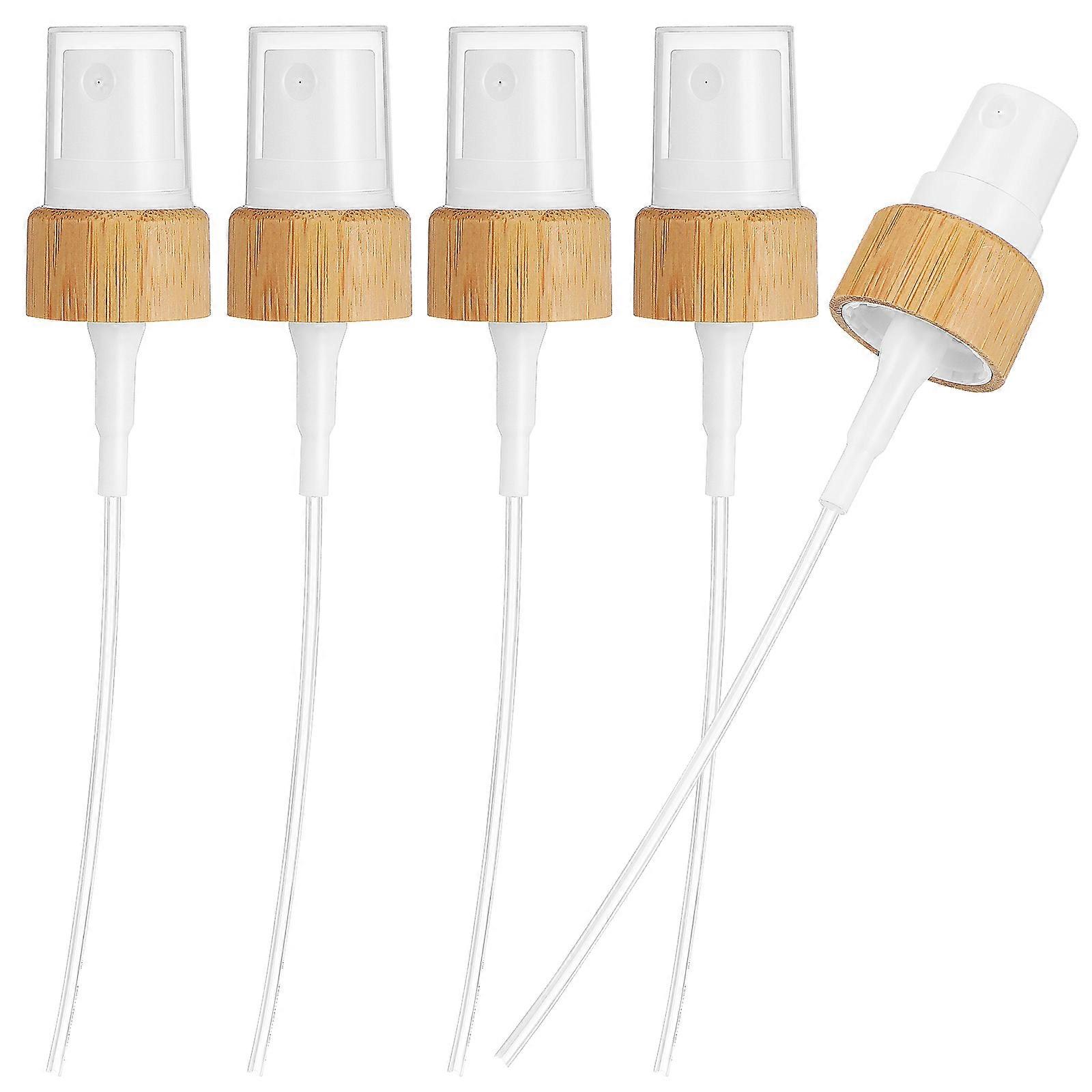 Upgrade your spray bottles with a touch of functionality and elegance. Our bamboo fine mist tops combine with durable plastic to create a premium dispensing experience. The fine-mist function provides even coverage for your skincare, cleaning solutions, or plants watering needs. Features -Color:White -Material:Bamboo, pp -Size:14.00X2.50X2.50cm/5.50X0.98X0.98in -Note: 1.5 threads turn -Spray output per stroke: 0.12ml -Uniform spray: Our spray heads generate a soft, consistent fine mist that evenly disperses fluids, perfect for gentle beauty routines. - : The incorporation of bamboo detailing imparts a distinctive elegance to the design, elevating the visual appeal of any bottle. -Sealing security: Meticulously designed with a tight-fitting seal, these spray tops effectively guard against leaks and drips, providing safe containment of your products. -Universal compatibility: Precisely tooled with standard threading, these spray bottle caps effortlessly adapt to different bottle capacities, facilitating convenient application. -Multi-purpose functionality: Versatile in use, the fine mist nozzles are compatible with essential oil containers, perfume vessels, cosmetics flasks, and more. Package list: 5 x spray heads