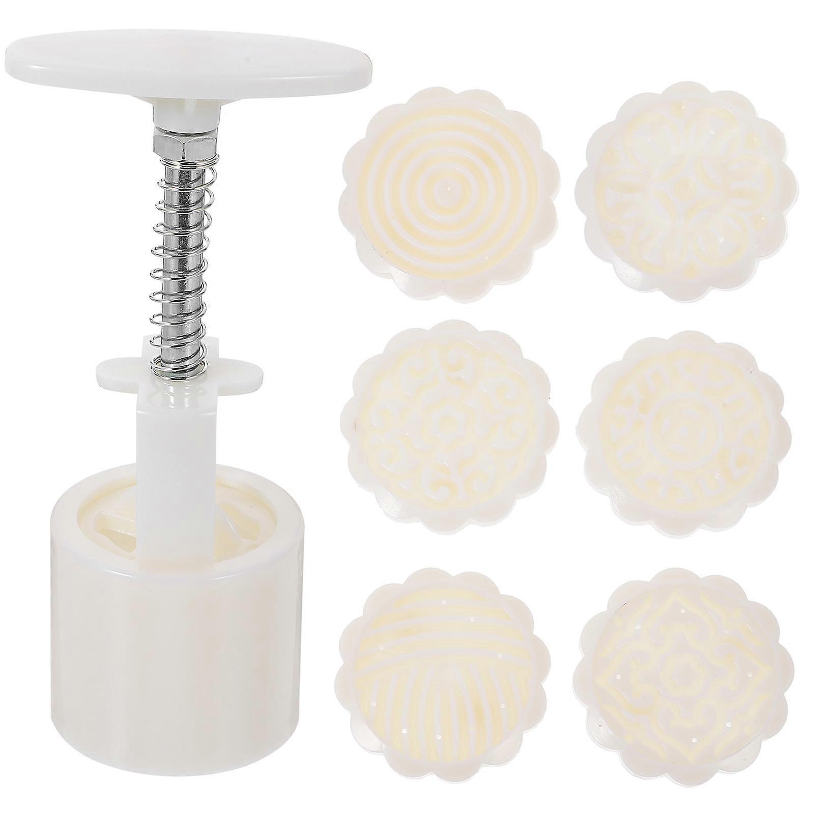 Moon Cake Press Mold Hand-Press Tool with 1Set Embossed Pattern Stamps