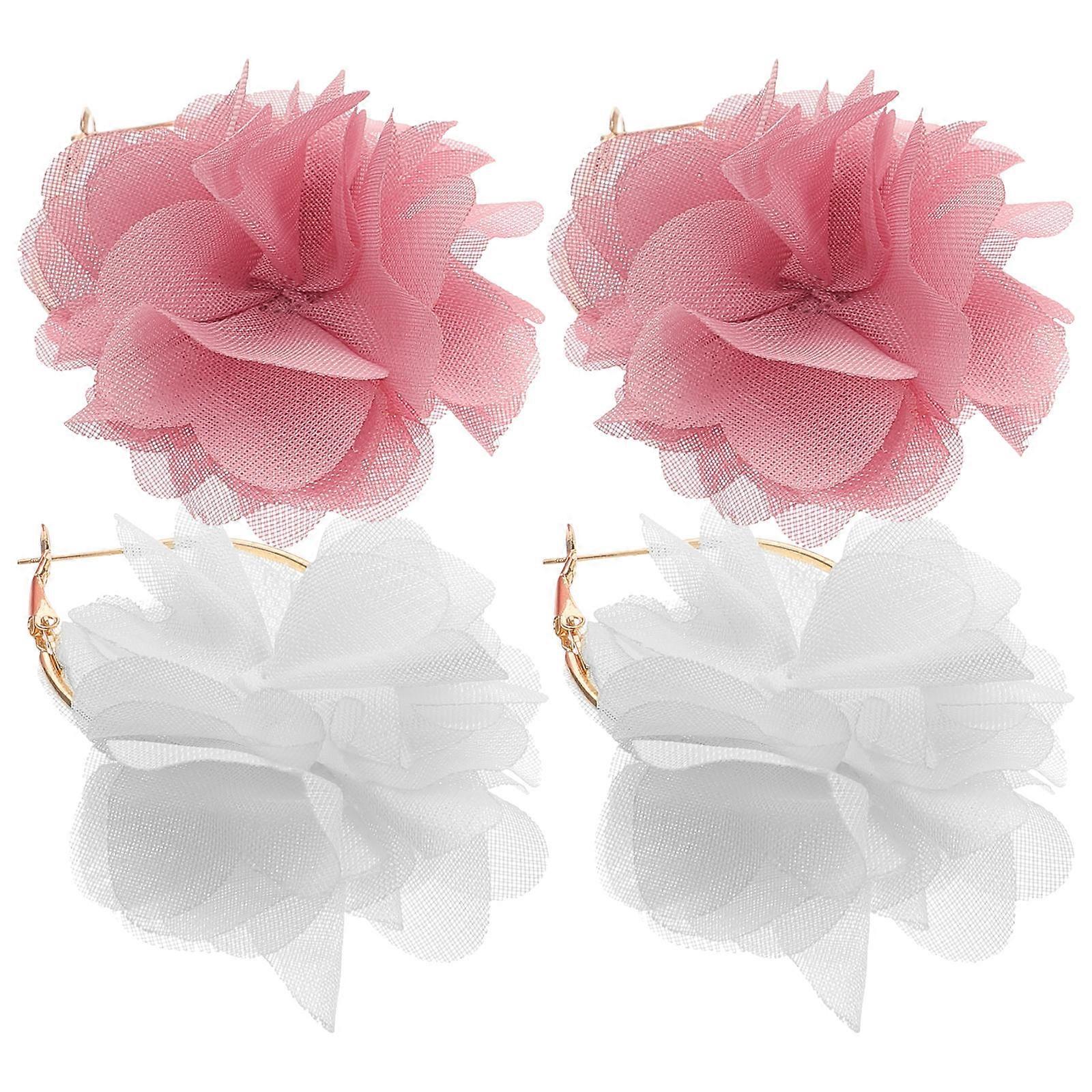 2 Pairs Fashion Trendy Flower Dangle Earrings for Women in Assorted Colors and Lightweight Alloy