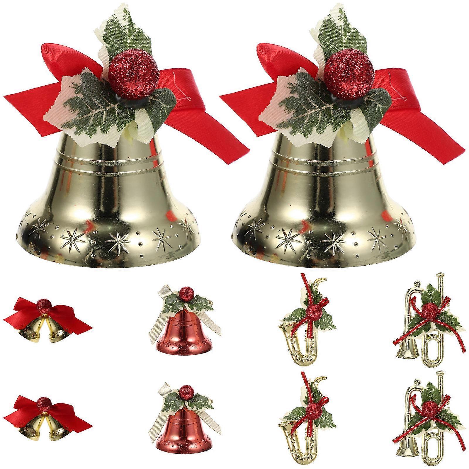 Christmas Bell Bowknot Ornaments 10pcs Gold Red Classic Style Xmas Tree Hanging Decorations for Holiday Parties, Weddings & Home DIY Crafts
