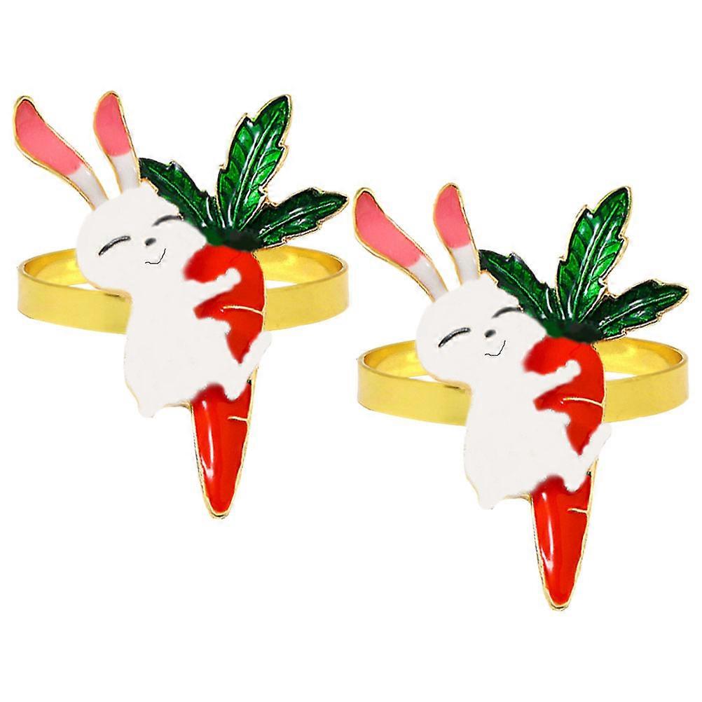 Easter Napkin Rings 2Pcs Multi Alloy Charming Bunny and Carrot Design for Decor