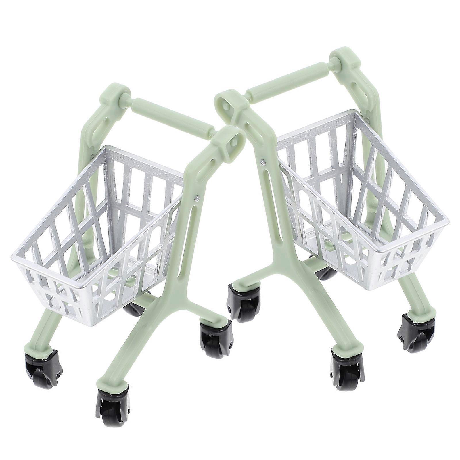 Mini Shopping Cart Toy 2Pcs Light Green Plastic Supermarket Cart Durable Miniature for Decoration