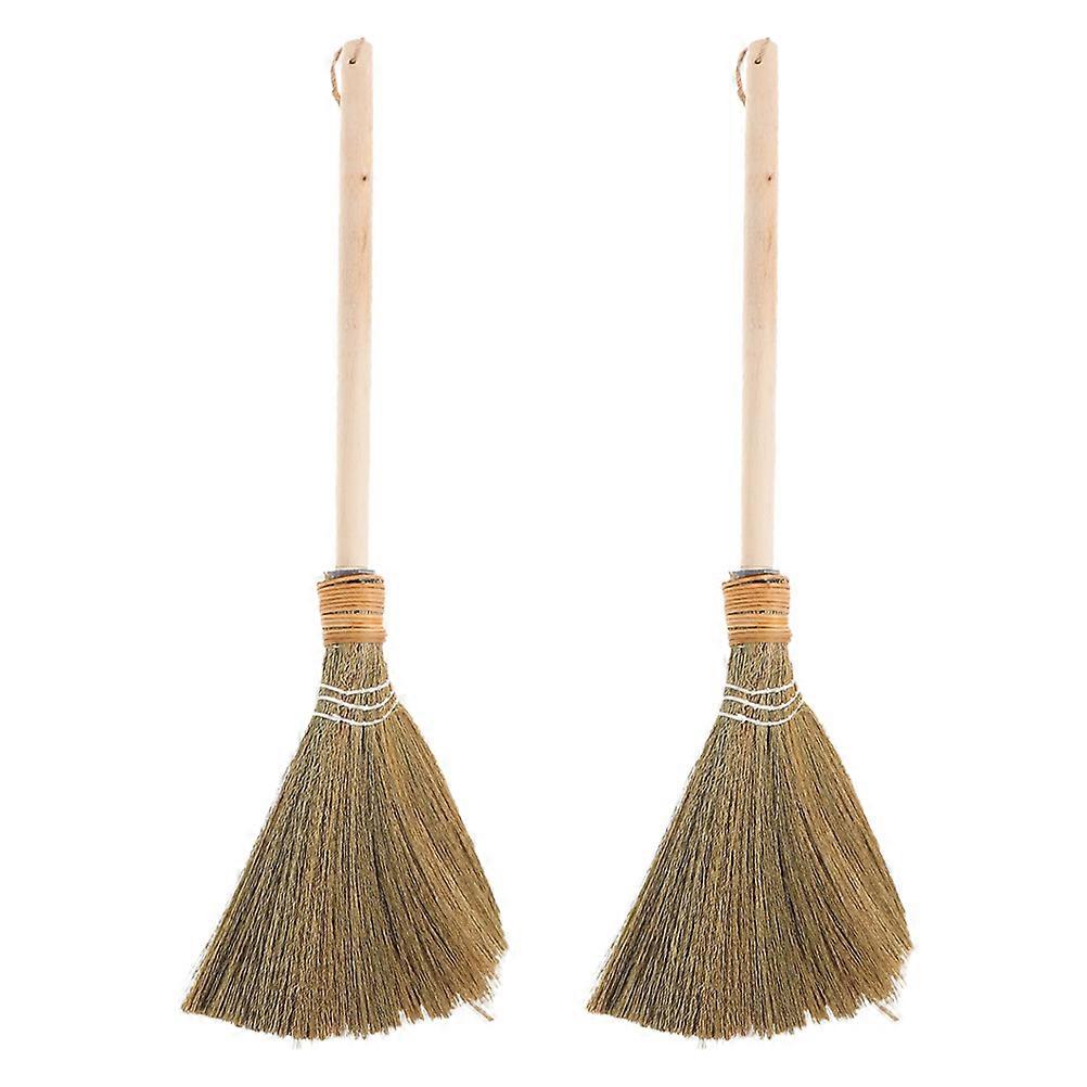 Handmade Indoor Broom for Dust Removal 2Pcs Soft Straw Handheld Brooms