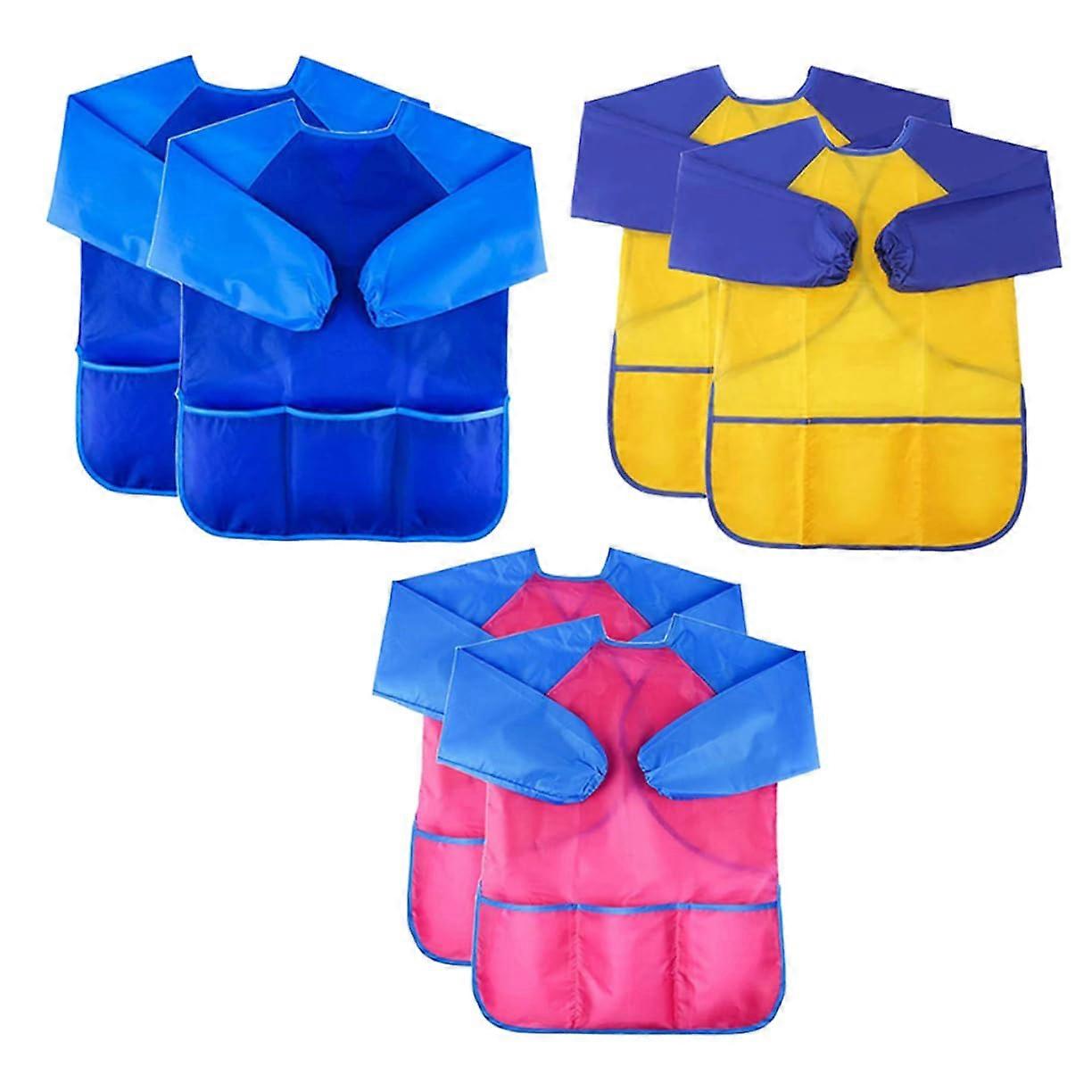 Children's Overalls Toddler Bib Long Sleeve Coat Painting Smock for Kids, Polyester, Pack of 6 Assorted Colors