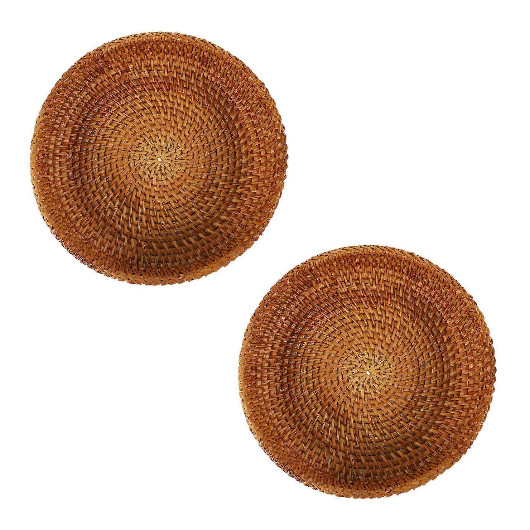 2X Handmade Autumn Rattan Weaving Round Storage Basket Fruit Dish Rattan Bread Basket for Kitchen Fo