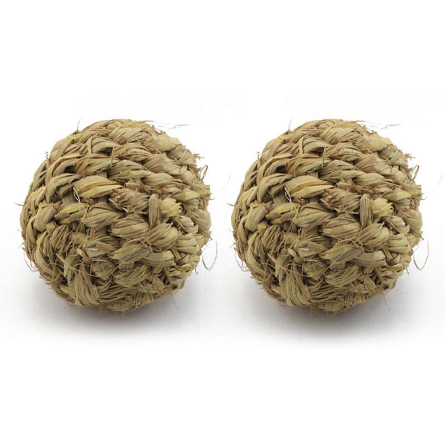 2X Pet Chew Toy Natural Grass Ball with Bell for Hamster Guinea Pig Tooth Cleaning