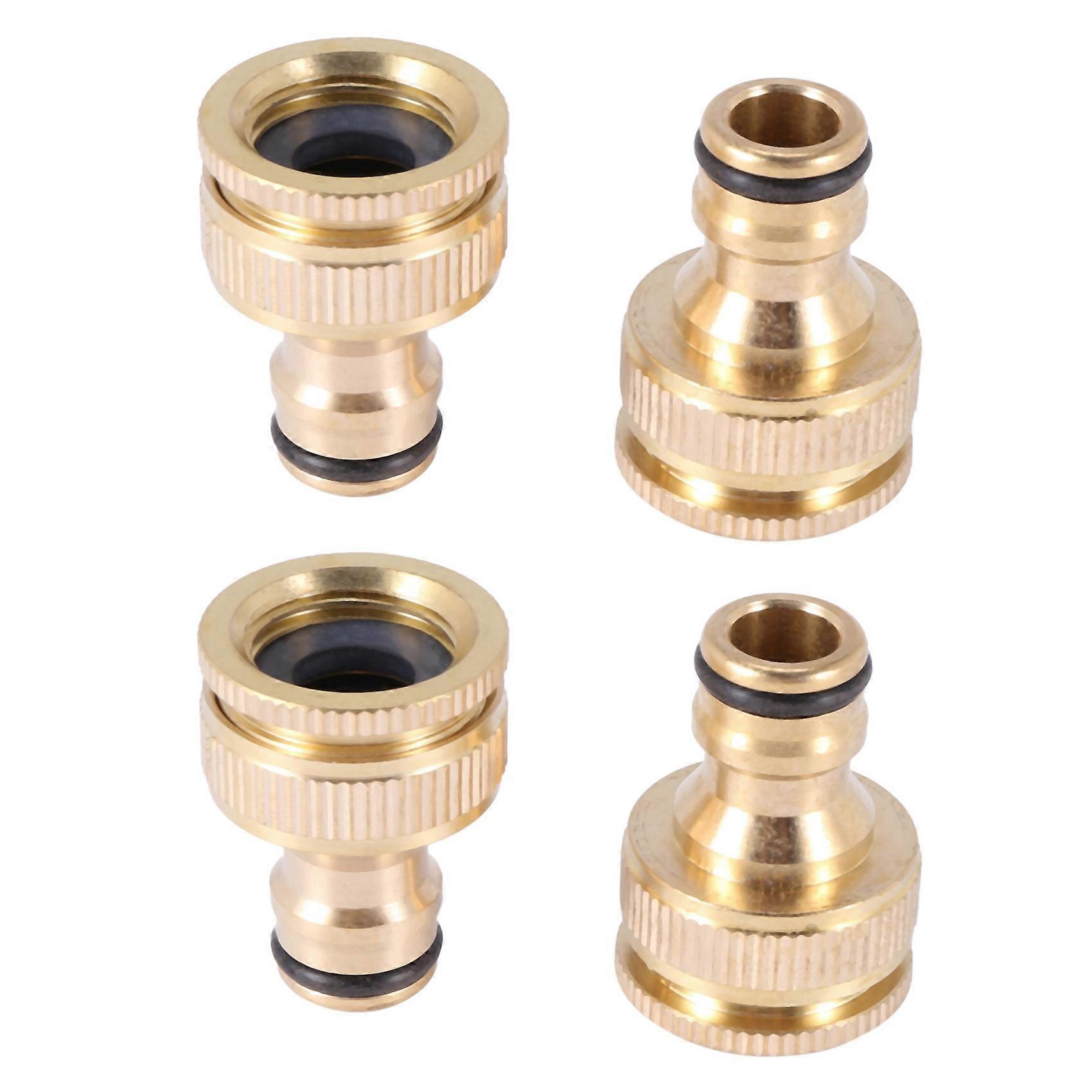 4 Pack Brass Garden Hose/Hosepipe Tap Connector 1/2 Inch and 3/4 Inch 2-In-1 Female Threaded Faucet