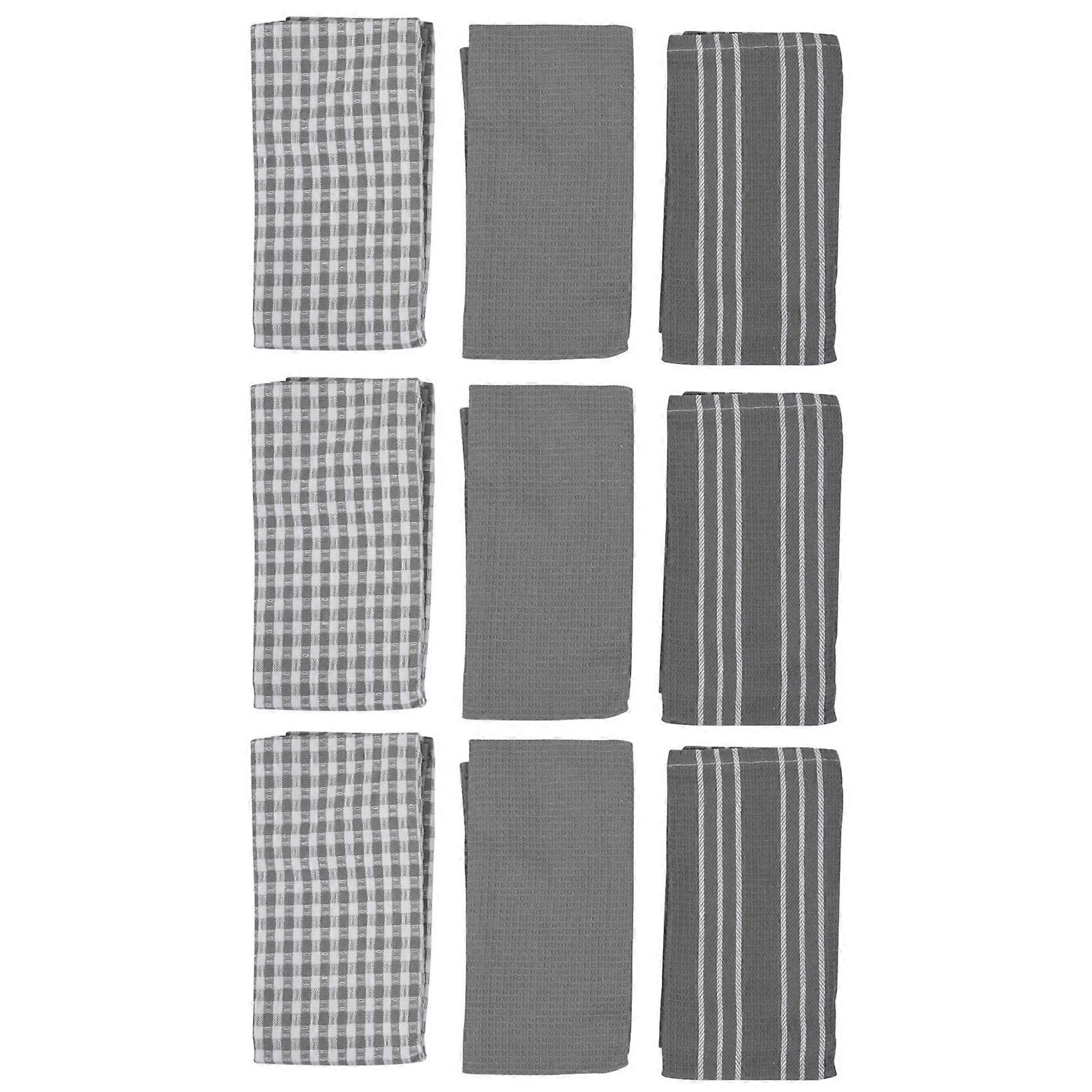 Towels, 100% Natural Cotton, The Best Tea Towels,Dish Cloth,18 x 25 Inch,9 Pack,White with Grey Str