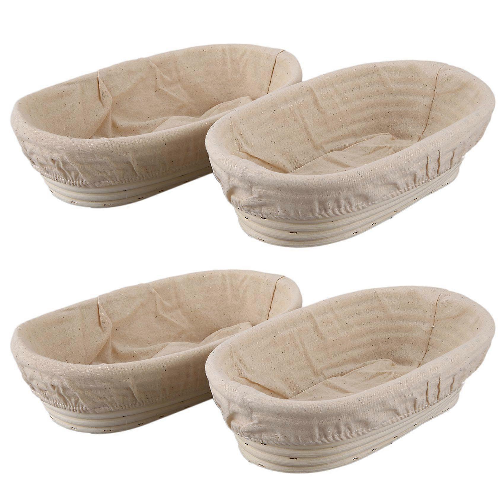 4Pcs 25Cm/10 Inch Bread Basket Rattan Proofing Basket Liner Round Oval Fruit Tray Dough Food Storage