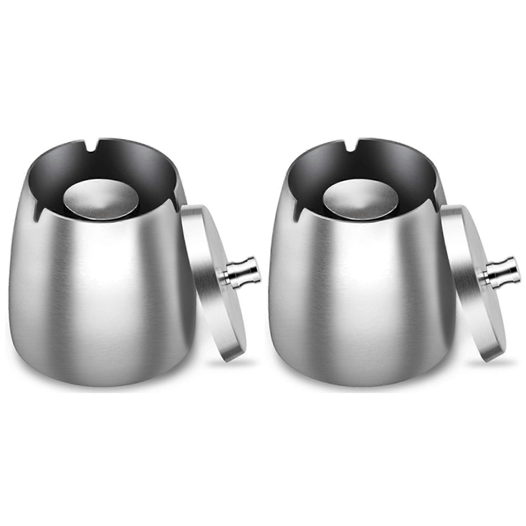 2X Ashtray Stainless Steel with Lid Heavy Ashtray Storm-Wind Non-Slip Base for Outside and Inside Si