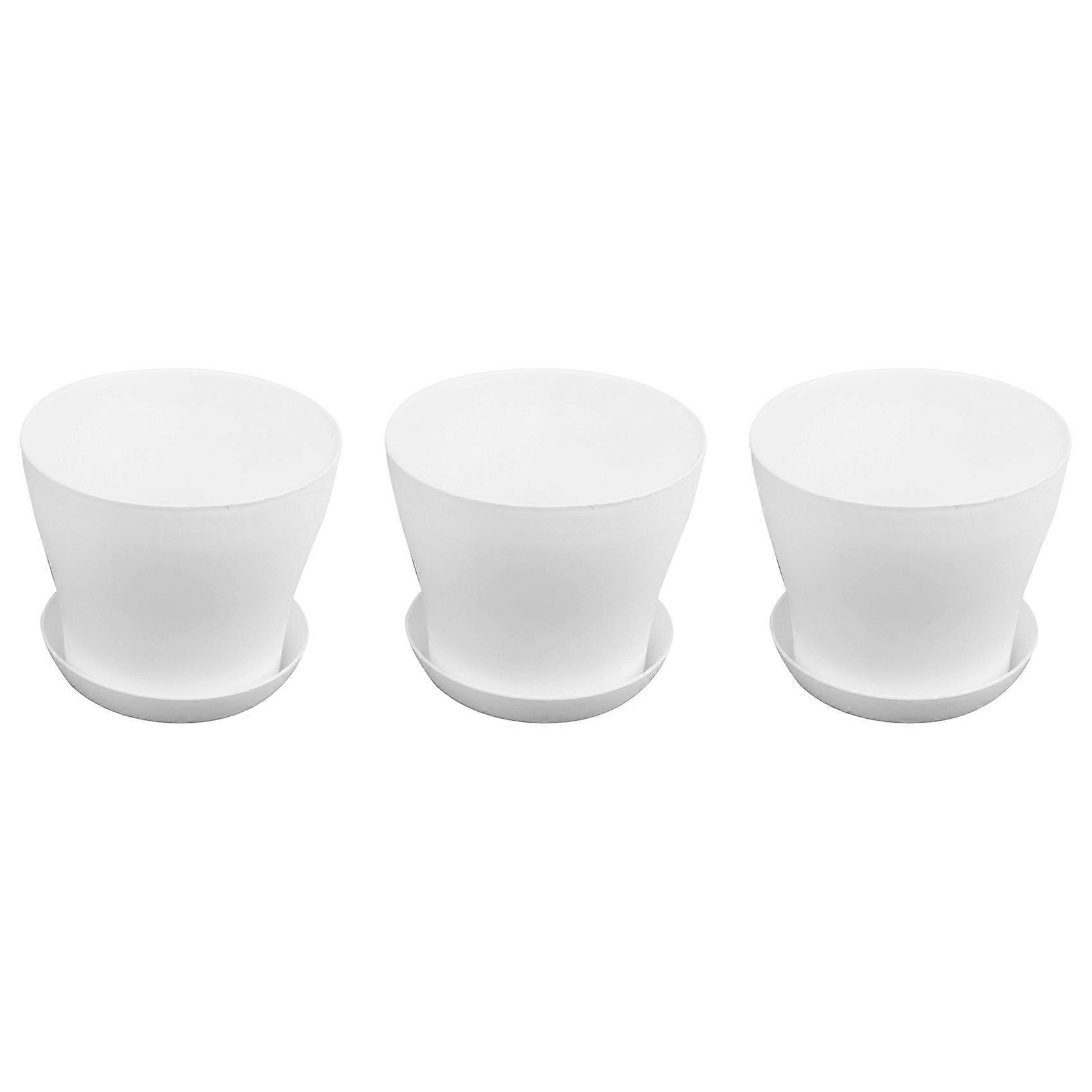 3X Plastic Plant Flower Pot Planter With Saucer Tray Round Gloss Home Garden Decor, White Upper -, 1
