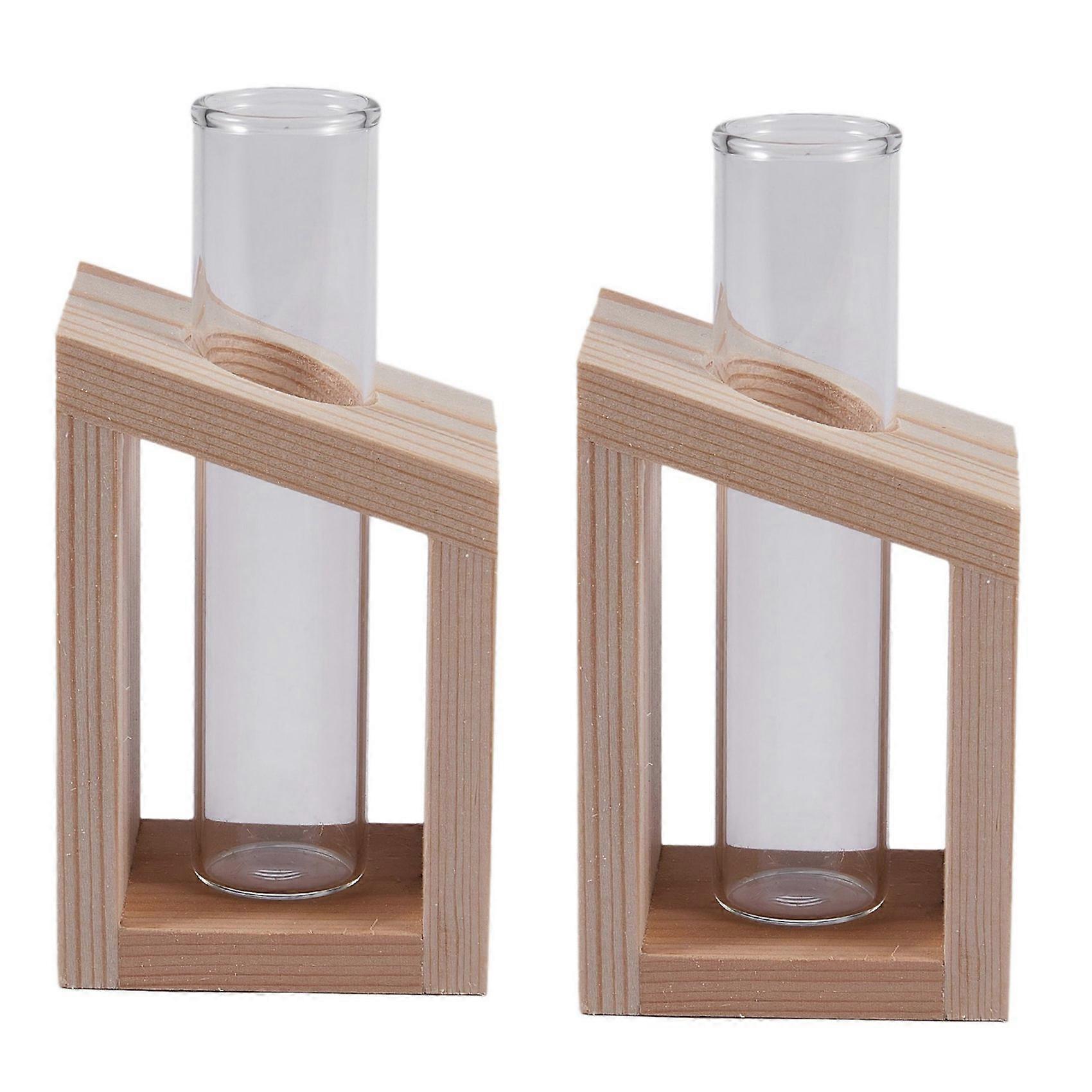 2X Crystal Glass Test Tube Vase in Wooden Stand Flower Pots for Hydroponic Plants Home Garden Decora