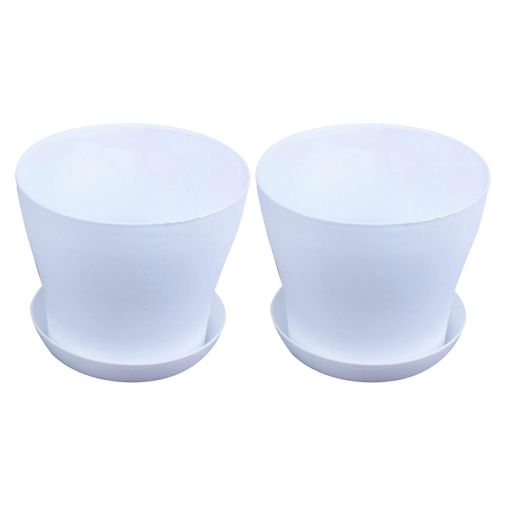 2X Plastic Plant Flower Pot Planter With Saucer Tray Round Gloss White Upper -, 17cm / 6.69 inch