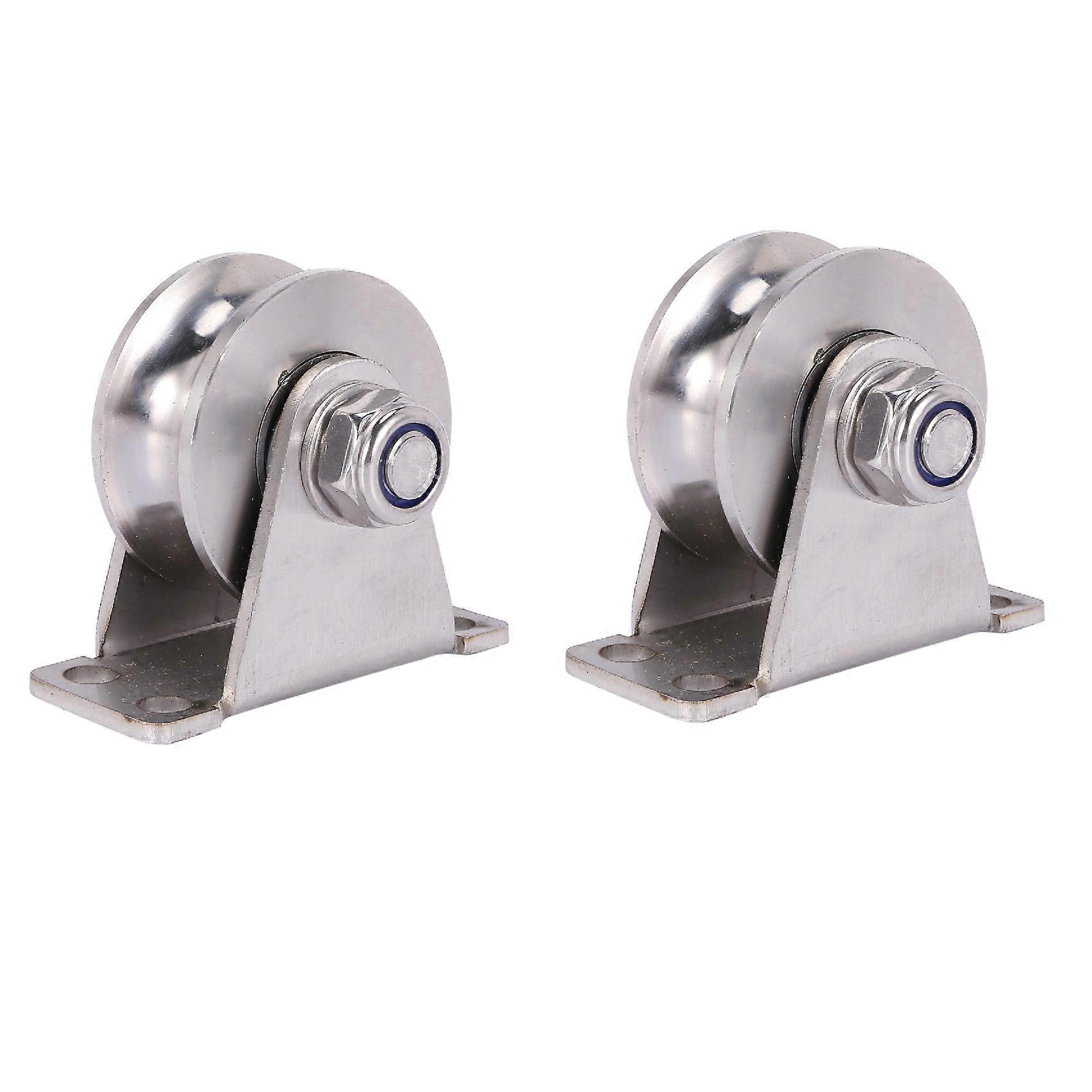 2Pack U-Type Stainless Steel Pulley Block Mute Bearings Groove Sliding Roller Track Wheel