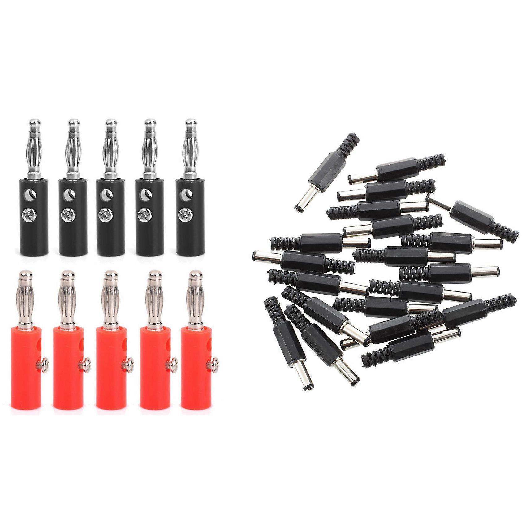 20Pcs Black 2.5mm x 5.5mm DC Power Male Plug Jack Adapter with 10Pcs 4mm Insulated Banana Plugs Conn