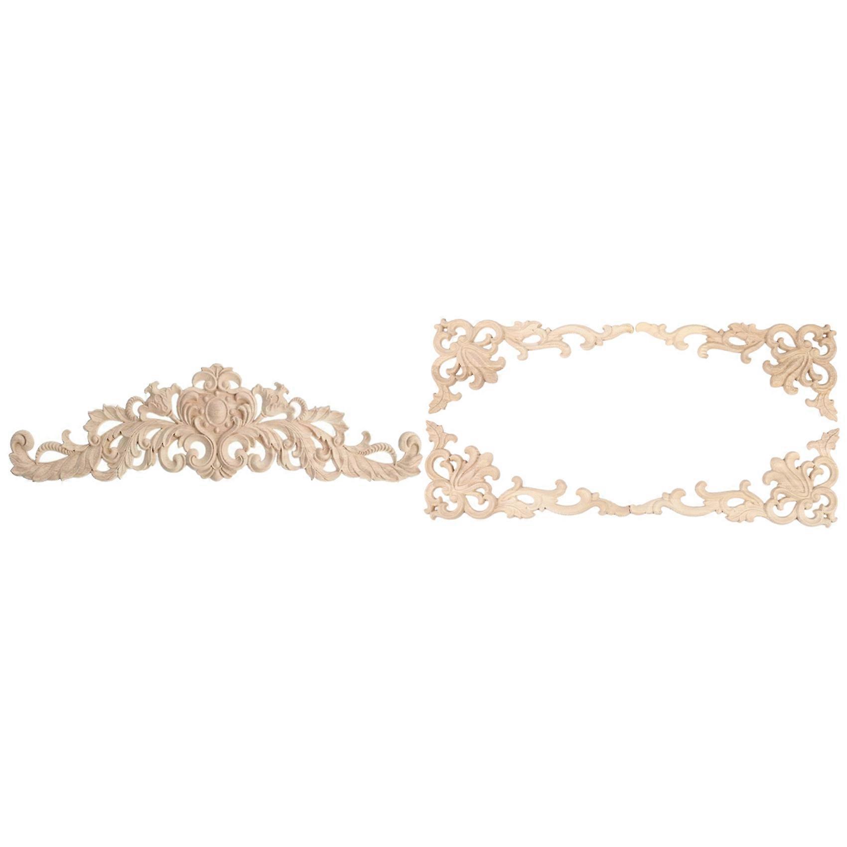 5 Pcs Rubber Wood Carved Applique Furniture Natural Decal Wood Color, 1 Pcs 40X12cm & 4 Pcs 20 X 10c