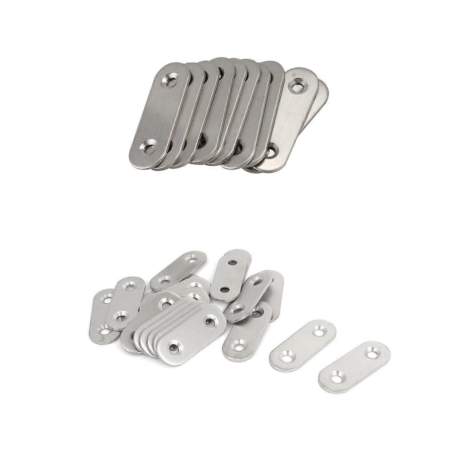 20 PCS Flat Fixing Plate & 10 PCS Mending Flat Plate The corner brace plate made of stainless steel. Design allows for easy repair of . Perfect for connecting furniture joint corner board. You need some screws for fixing, but here not included. Main Material: Stainless Steel Main Color: Silver Tone Hole Quantity: 2 Mending Flat Plate: This mending flat plate is an important fasterner to make furniture stay firm. You need some screws for fixing, but here not included. Mounting screw is not include here. Product Name: Mending Flat Plate Plate Size: 50 x 16 x 2mm/2 x 0.6 x 0.08 inch (L x W x T) Mount Hole Dia.: 5mm/ 0.2 inch Mount Hole Center Distance: 31mm/ 1.2 inch Flat Fixing Plate: Product Name: Flat Fixing Plate Total Size: 40 x 15 x 1.7mm/ 1.6 inch x 0.6 inch x 0.067 inch (L x W x T) Thickness: 1.7mm/ 0.067 inch ; Hole Diameter: 4.5mm/ 0.18 inch Hole Quantity: 2 Holes; Hole to Hole Distance: 23mm/ 0.9 inch Feautures: 40mm (length) x 15mm (width) x 1.7mm (thickness). This flat fixing plate is an important fasterner to make furniture stay firm. Type: Flat (Straight) Package Contents: 20 x Flat Fixing Plate 10 x Mending Flat Plate Only the above package content, other products are not included. Note: Light and different displays may cause the color of the item in the picture a little different from the real thing. The measurement allowed error is +/- 1-3cm.