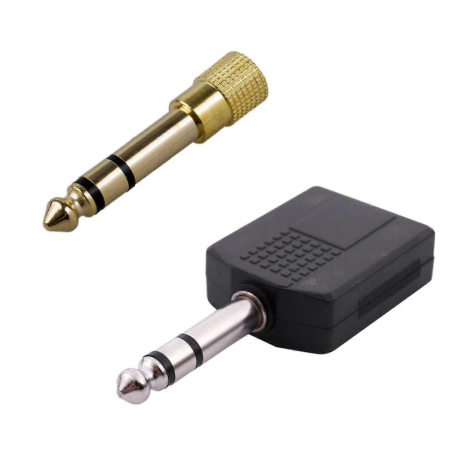 Headphone Adapter Gold Plug & Mono 6.35mm Male Plug to Dual 6.35mm Female Socket Splitter Adapter Co