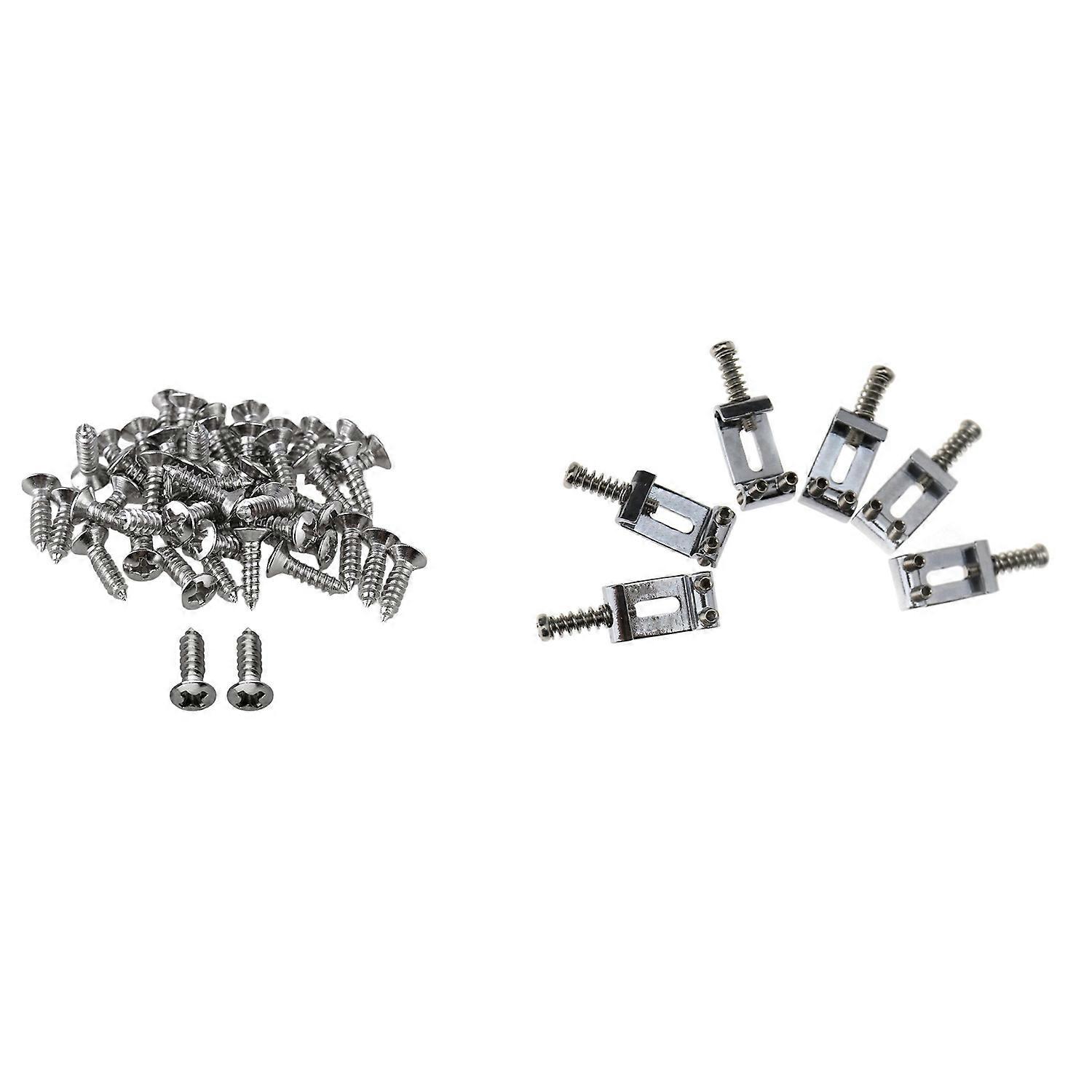 50X Guitar Bass Screws Parts for Scratchplates Pickguard, Silver with 6X Replacement Chrome Tremolo