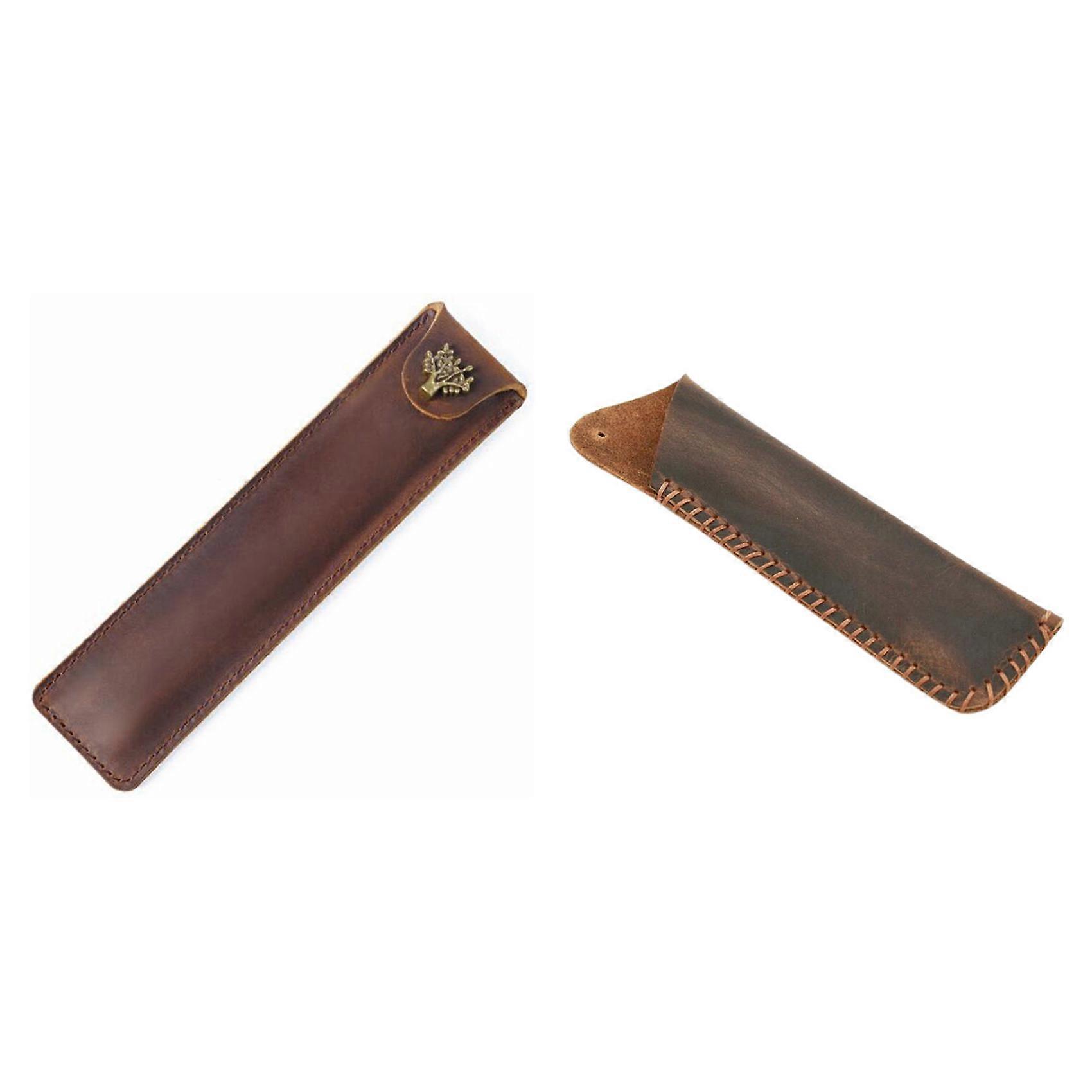 2PCS Genuine Leather Double Pen Sleeve Case Holder Pouch Cover for 2 Pen Handmade Vintage Brown