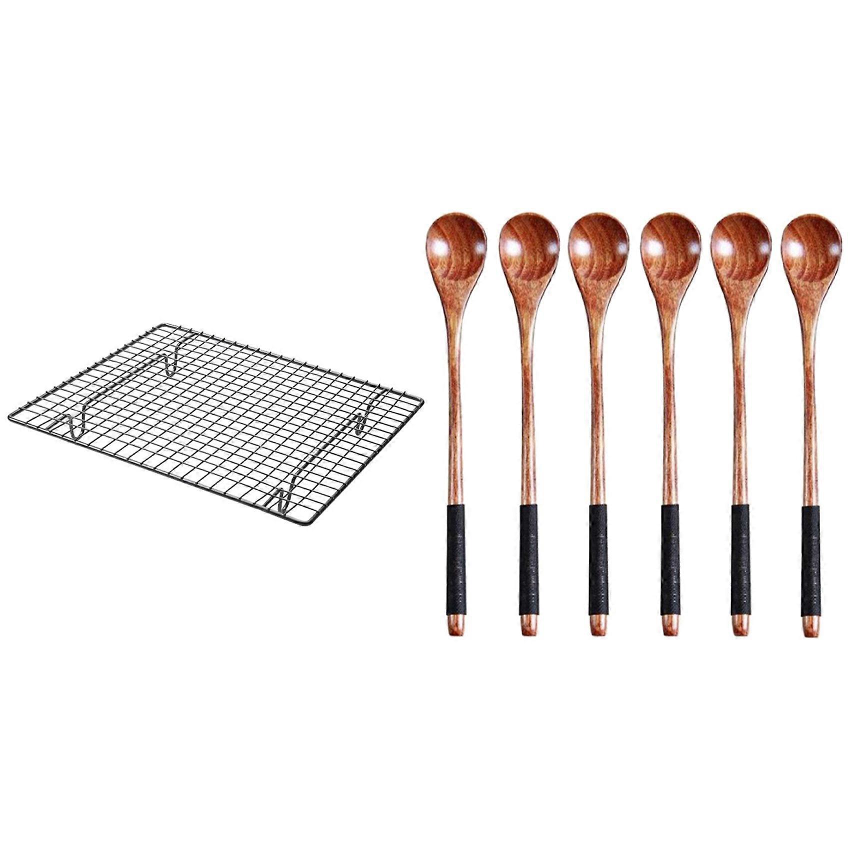1 Pcs Non-Stick Cake Cooling Rack Baking Rack & 6 Pcs Long Handled Wooden Spoons Wood Tea Coffee Spo
