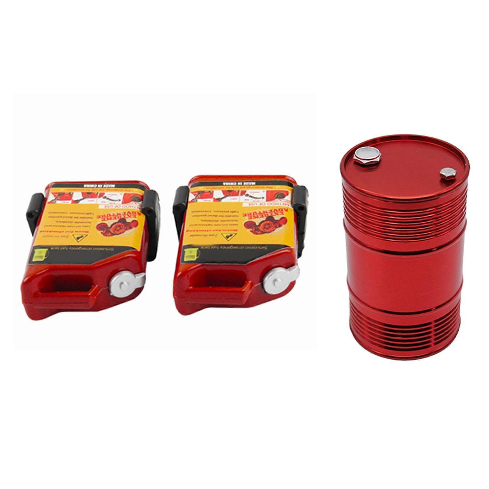 2 Pcs 1/10 Scale Rc Crawler Accessory Mini Fuel Tank & 1 Pcs Metal Oil Drum Fuel Tank Container
