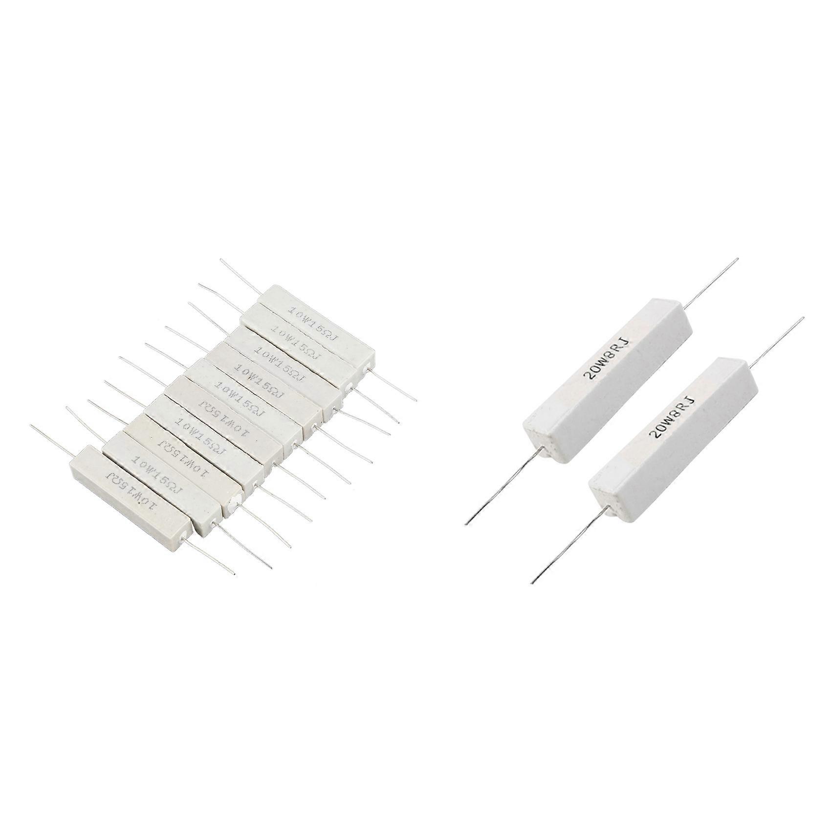 12Pcs Fixed Ceramic Cement Resistors 5% Watt,15 Ohm 10W & 8 Ohm 20W