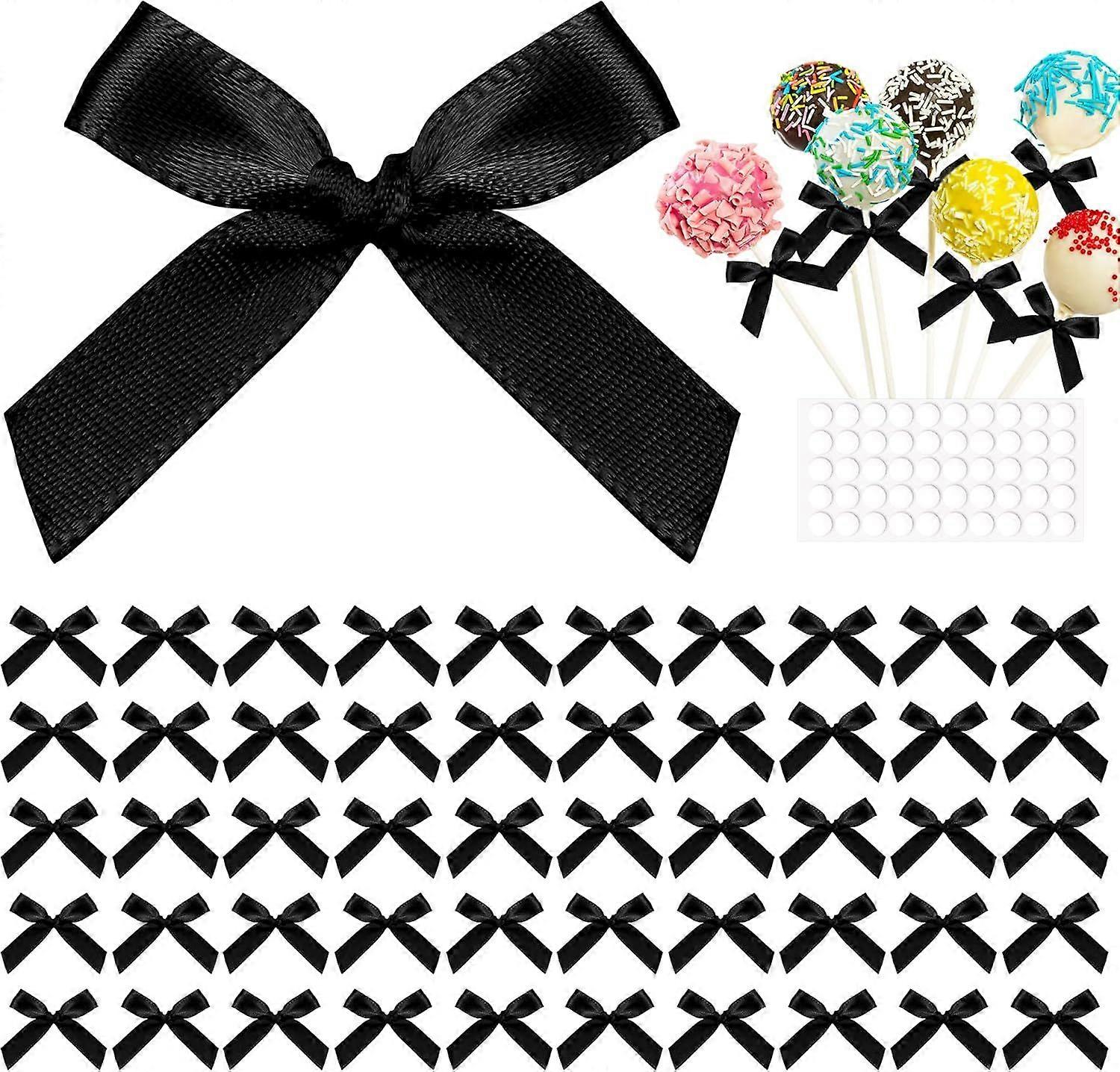 200pcs Small Craft Bows: Mini Black Satin Ribbon Bows for DIY Crafts Wedding Decorations Birthday Party Cake Toppers Scrapbooking Sewing present