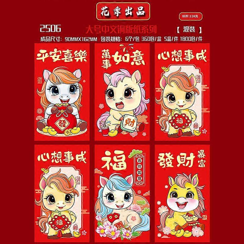 Description Celebrate the Year of the Horse with these beautifully designed red envelopes, featuring intricate patterns and creative motifs that embody the spirit of Chinese New Year. suitable for presenting during festive occasions, these envelopes add a touch of tradition and elegance to your holiday celebrations, making them ideal for sharing blessings and good fortune. Features -Color:Multi -Material:Paper -Size:11.50X8.10X0.10cm/4.52X3.18X0.04in -Unique year of the horse design: celebrate 2026 with exclusive horse themed red envelopes, adding a festive touch to your lunar new year traditions -Craftsmanship: features intricate embossed patterns that showcase elegance and style, making your present stand out during celebrations -Versatile for various occasions: suitable for family gatherings, corporate events, or parties, these envelopes meet diverse festive needs effortlessly -Innovative solution: combines practicality with creativity, suitable for all ages, from children to adults, enhancing the presenting experience -Fosters emotional connections: share heartfelt blessings and strengthen bonds with loved ones, creating a warm and joyful holiday atmospherePackage list: 300 x Chinese New Year Red Envelope