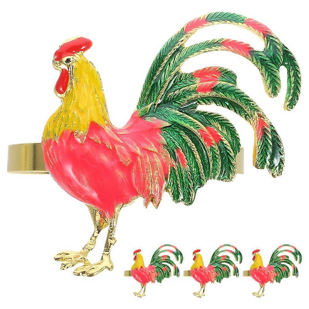Description Elevate your dining experience with our exquisite rooster napkin rings. Crafted from alloy, these napkin holders are durable. The colorful rooster design adds a touch of whimsy and elegance to any table setting, making them ideal for both casual and formal occasions. Features -Color:Assorted Color -Material:Alloy -Size:4.50X4.40X4.00cm/1.77X1.73X1.57in - These metal rooster napkin rings are crafted from metal and feature a beautiful enamel coating. The intricate design showcases a lifelike rooster, adding a touch of rustic charm and artistic flair to your dining table. -The vibrant rooster design brings a playful and charming element to your dining table, making every meal feel special and inviting. -This versatile item serves as both a functional napkin holder and an eye-catching decorative piece, enhancing your table setting effortlessly. -Its compact and lightweight nature makes it ideal for easy transport, whether you're hosting a family meal at home or enjoying a picnic outdoors. -Ideal for a variety of dining environments, this product is suitable for use in homes, hotels, and restaurants, adding a touch of whimsy to any setting. Package list: 4 x rooster napkin rings