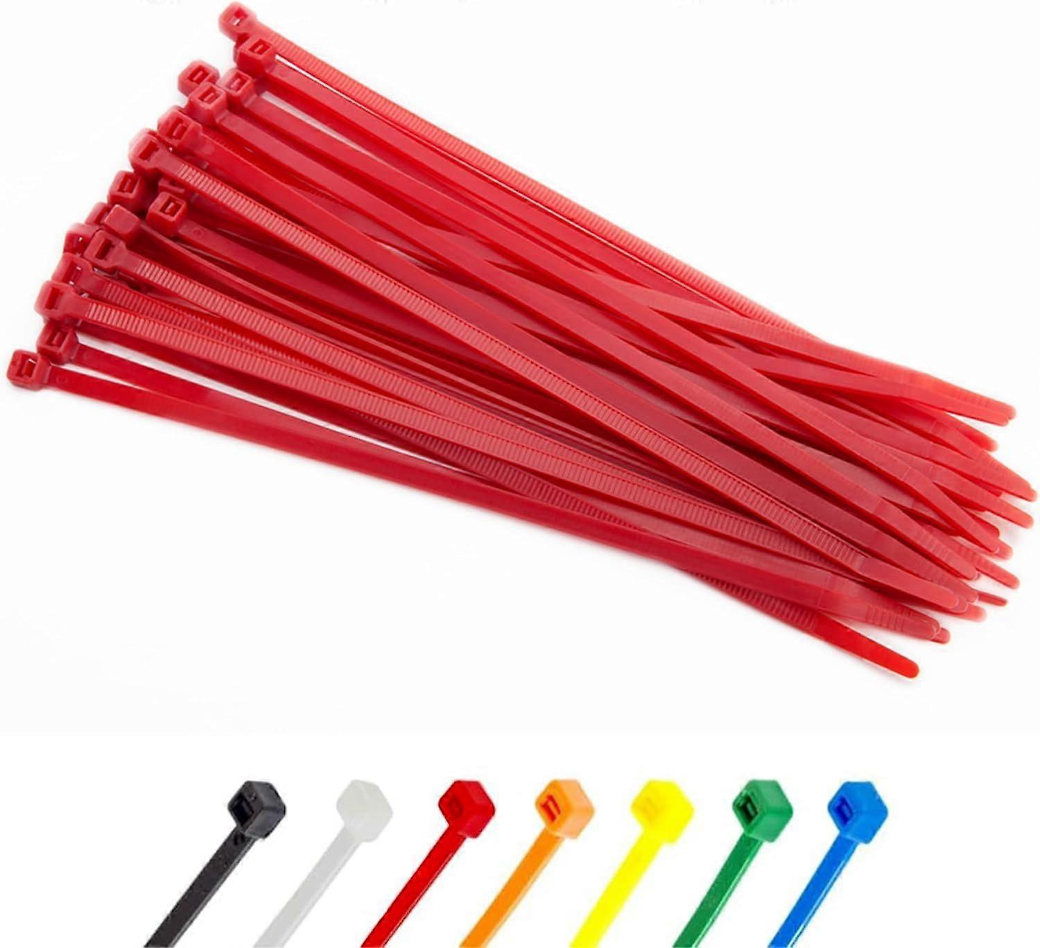 Red Cable Ties 3mm x 150mm, Pack of 100, Self-Tightening, 8 Inch Nylon Cable Ties, High Quality High Tensile Strength Plastic Cable Ties