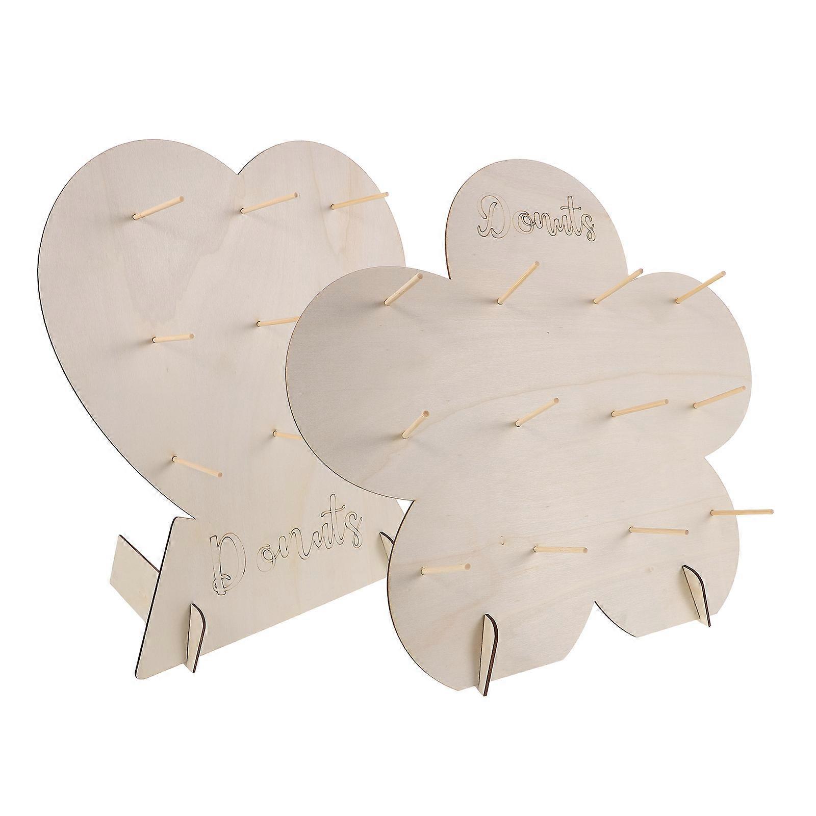 Holiday Decoration Festive Doughnut Holder Wooden Cake Stand 2Pcs Set