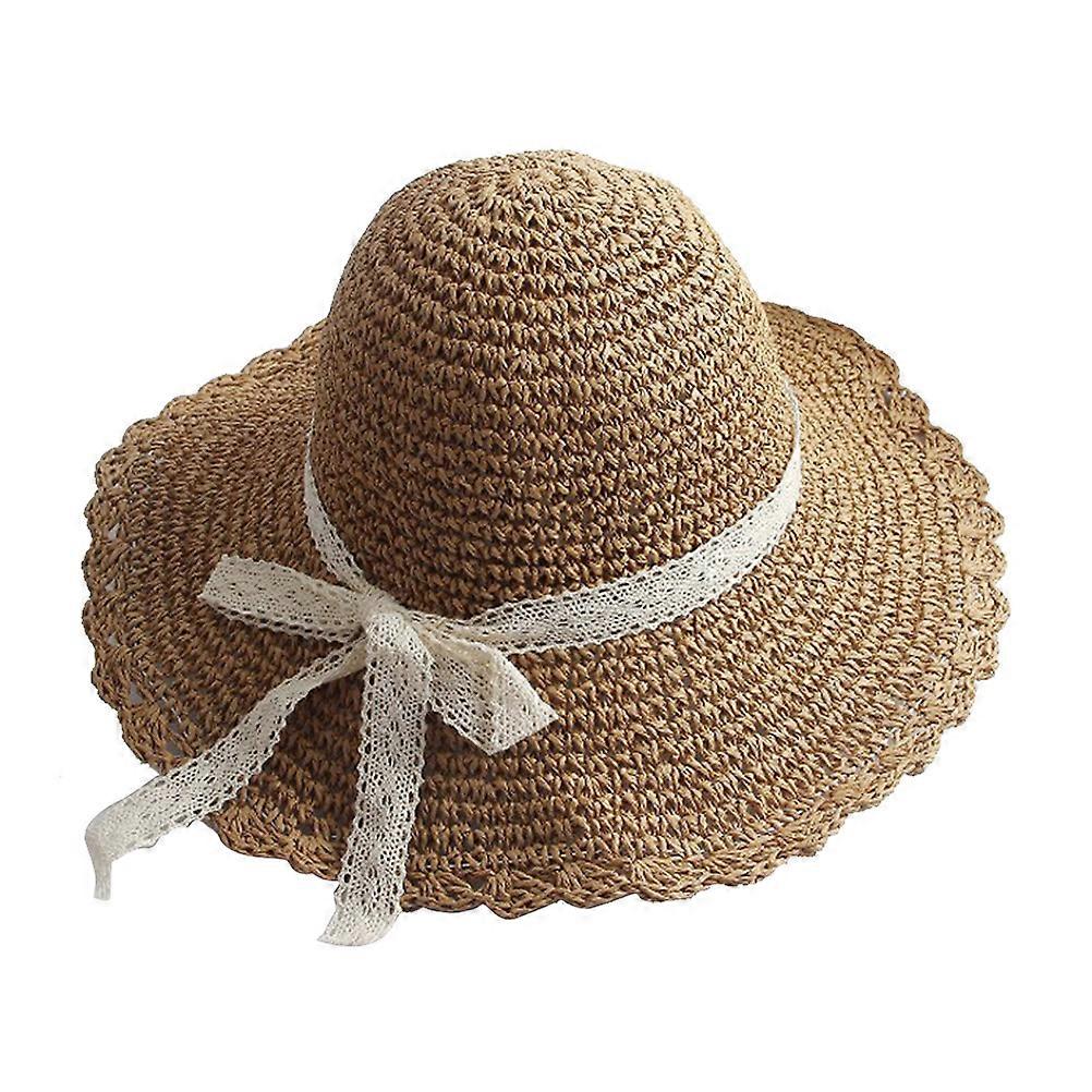 Sun Protection Straw Hat Bowknot Design for Outdoor Use Khaki Beach Hat