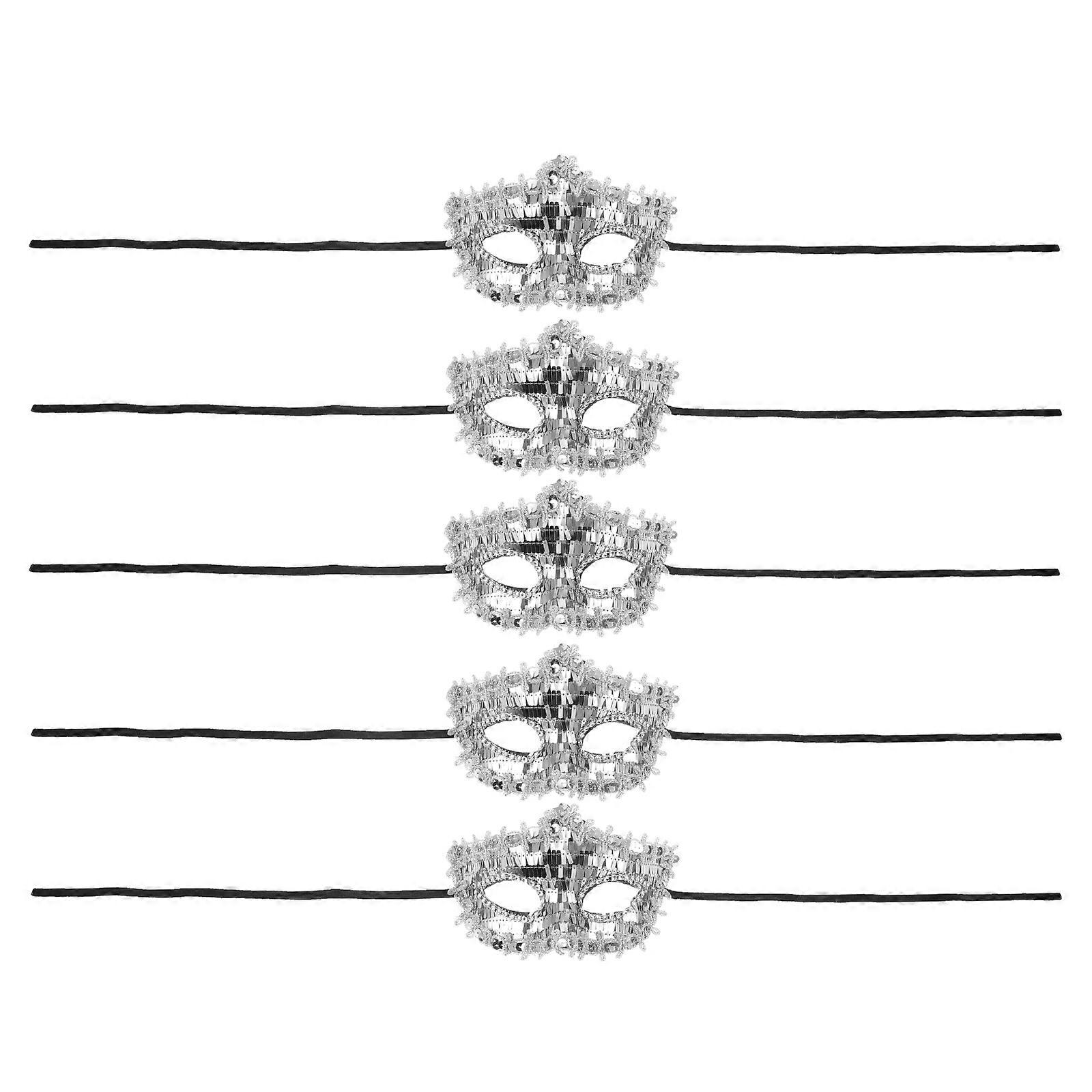 Halloween Eye Mask Half Face Masquerade Mask for Women 5Pcs Silver Party