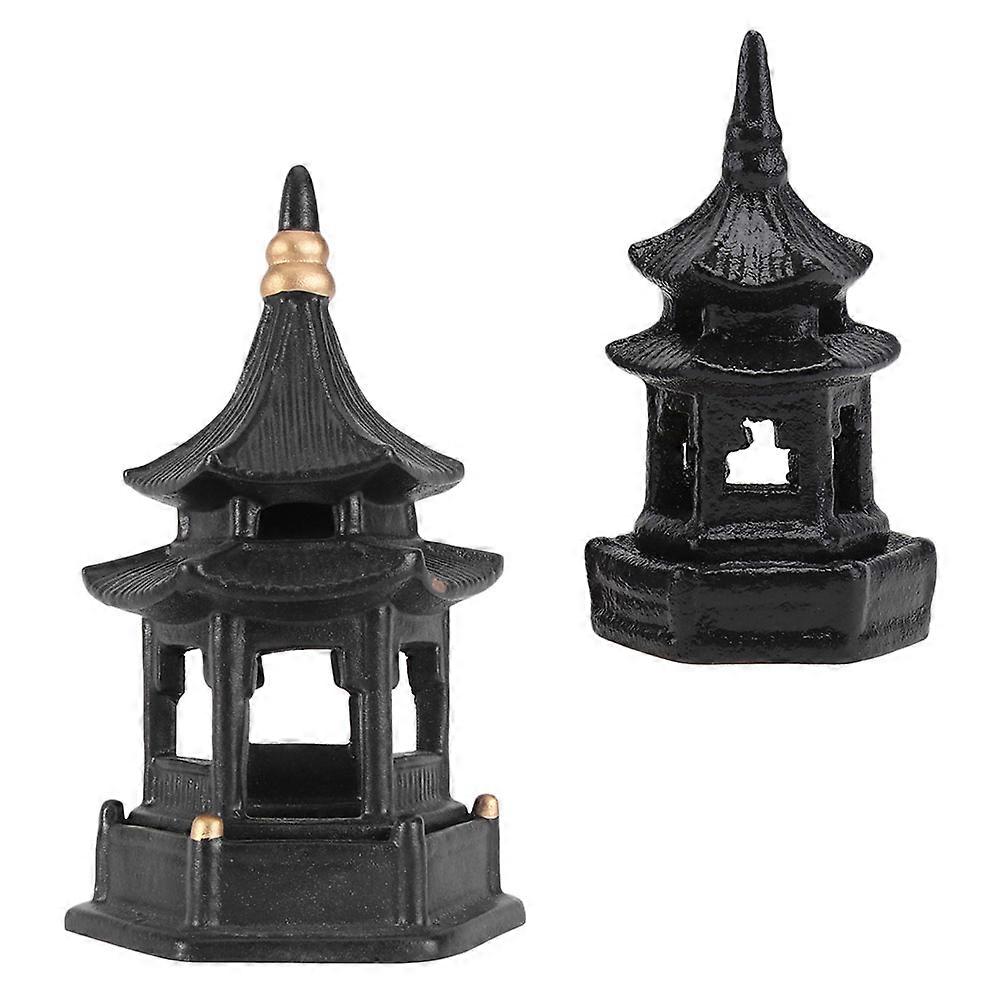Micro Landscaping Pavilions 2Pcs Black Ceramic Desktop Ornaments for Unique Fish Tank Accent