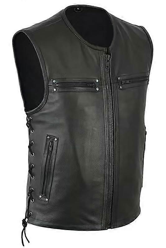 Faux Leather Rocker Vest Men Biker Club Vest PU Leather Motorcycle Vest Full Zip Size 4XL Plus Size