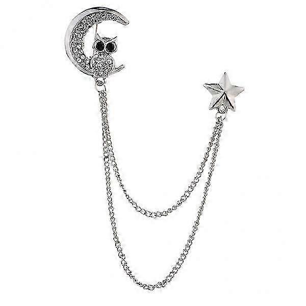 3-5pack Men Elegant Lapel Pin Badge with Chain Owl Brooch Pin for Suit Tuxedoq