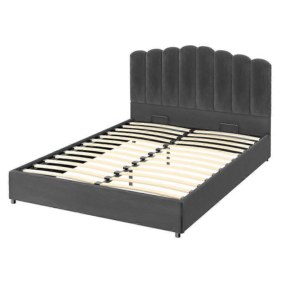 Upholstered In Velvet Fabric Gas Lift Storage Mechanism Frame With Slat Support Padded Headboard Smooth Edge Finish Sturdy Metal Connectors