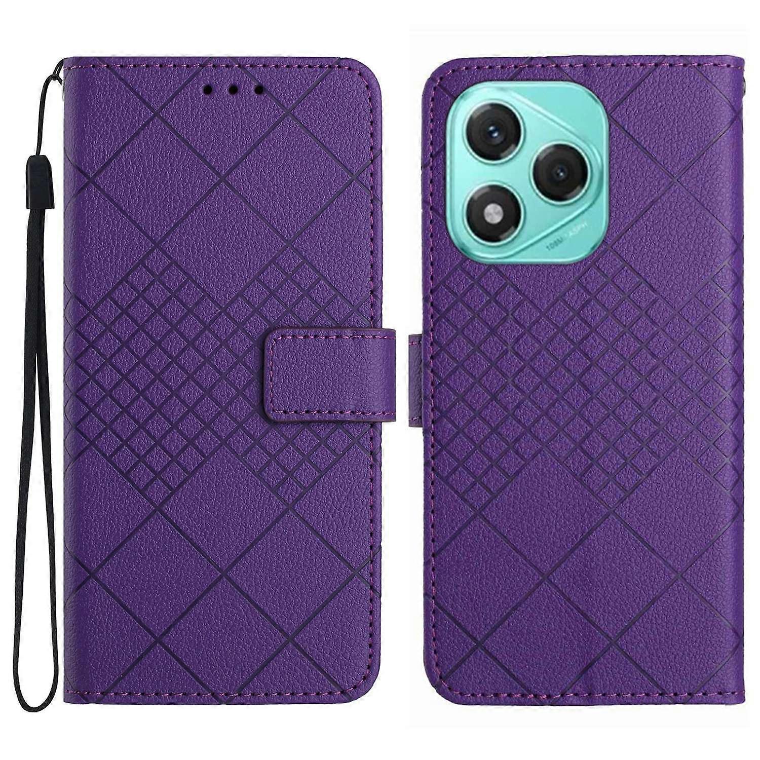 For Honor 400 Lite 5G Case Wallet Imprint PU Leather Flip Folio Phone Cover - Dark Purple