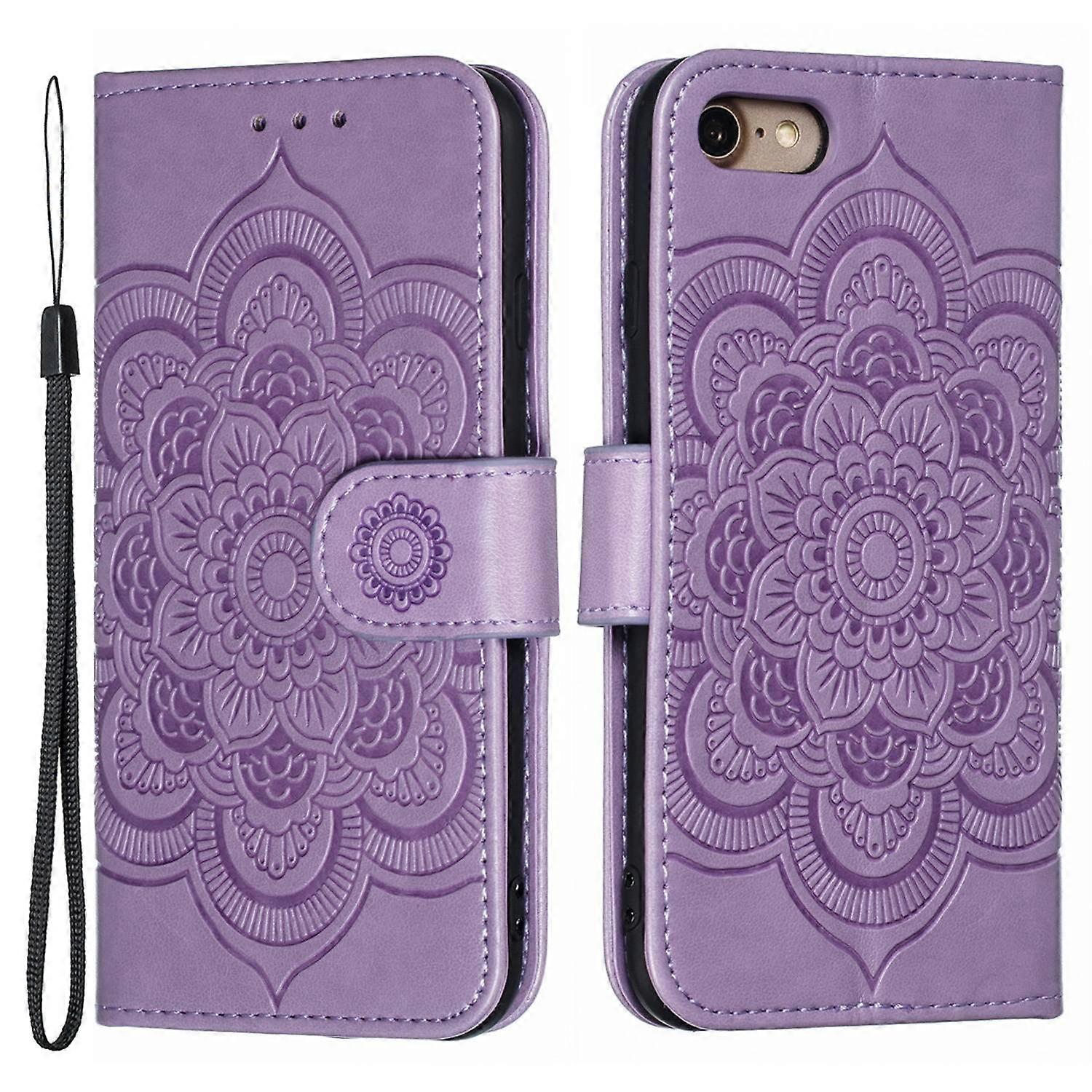 Imprint Mandala Flower Wallet Stand PU Leather Case for iPhone SE (2020) SE (2022) 8 7 4.7 inch - Pu