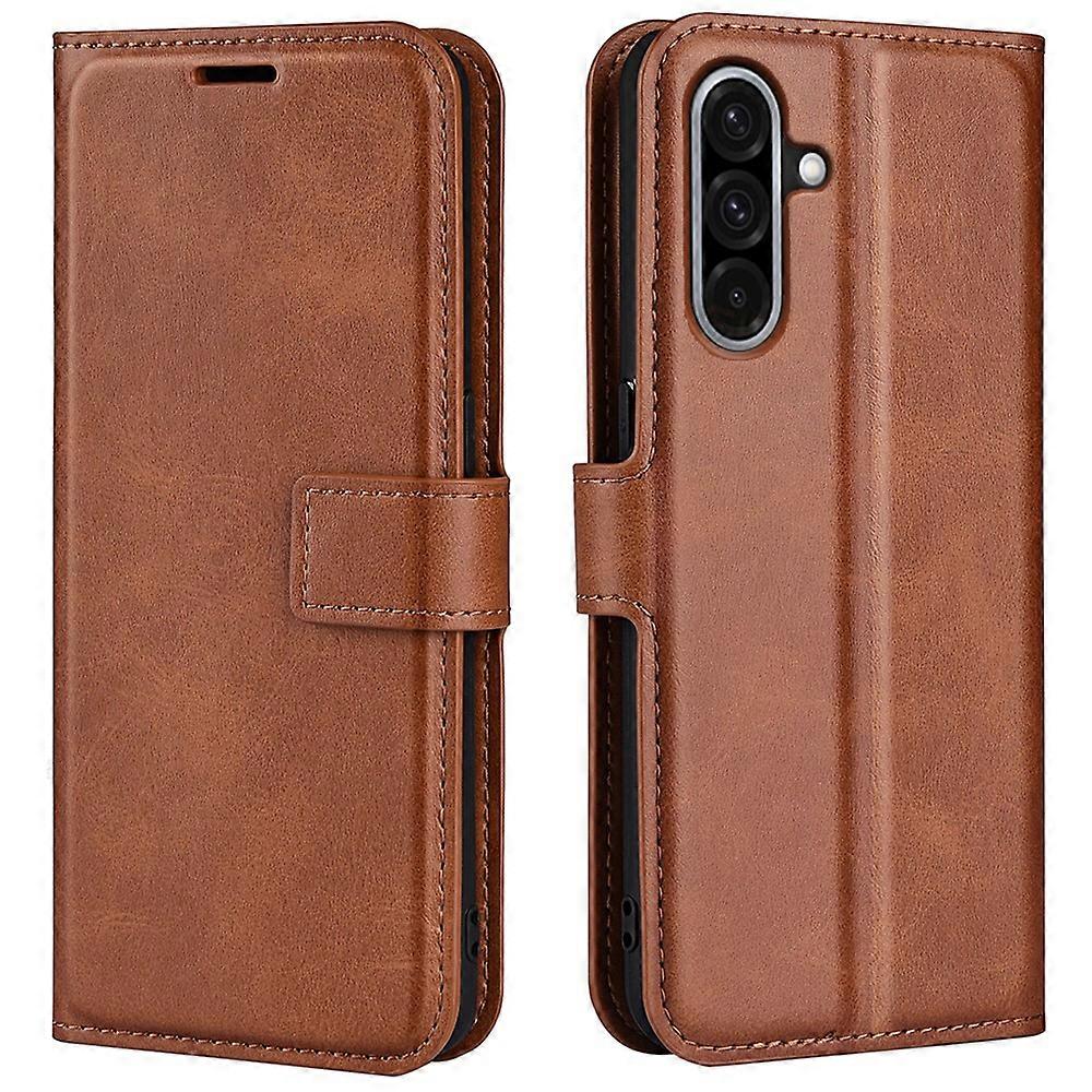For Samsung Galaxy A36 5G A56 5G Stand Case Anti-Scratch Calf Texture Leather Phone Cover - Light Br