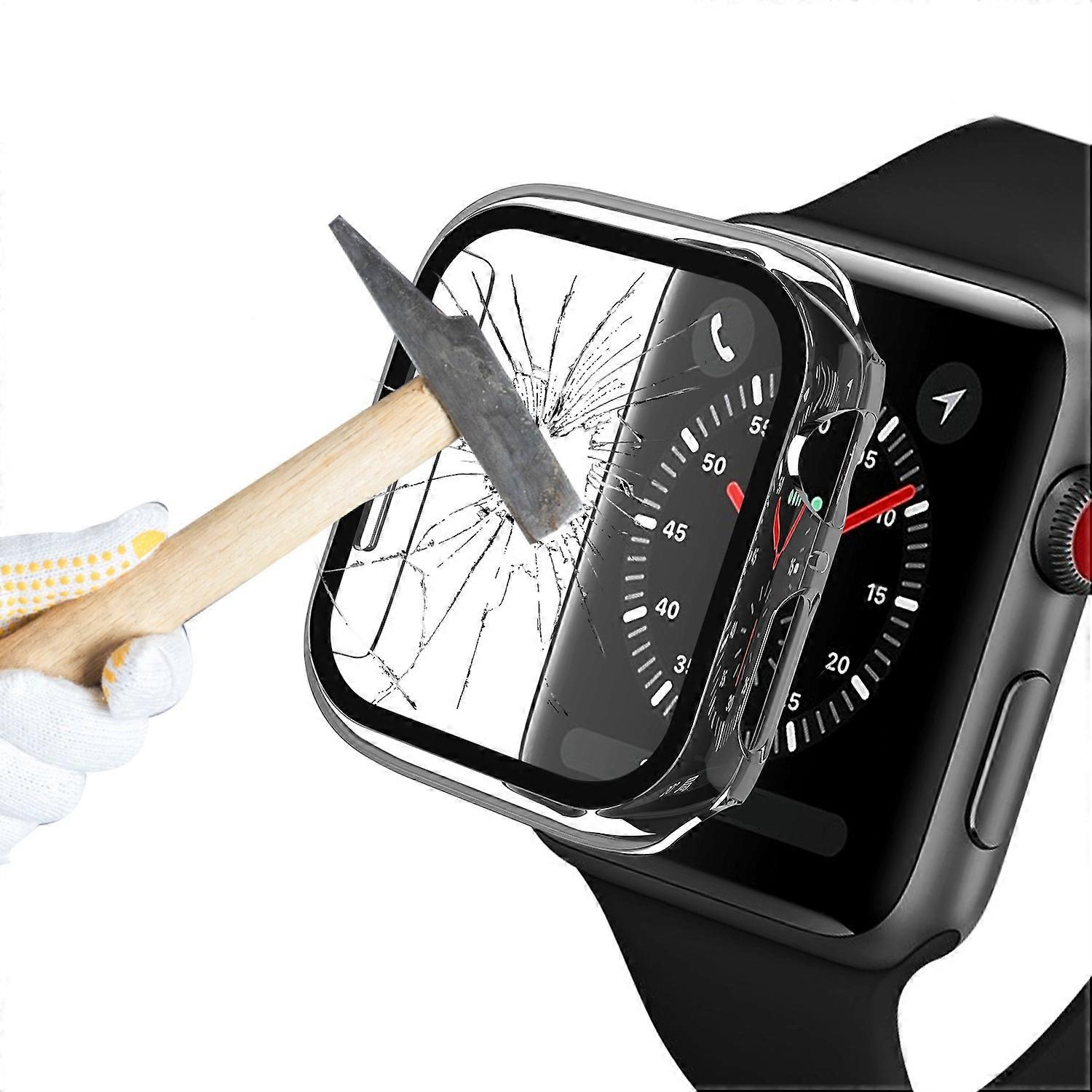 Plating Frame PC + Tempered Glass Watch Shell for Apple Watch SE SE (2022) Series 6 5 4 44mm - Trans