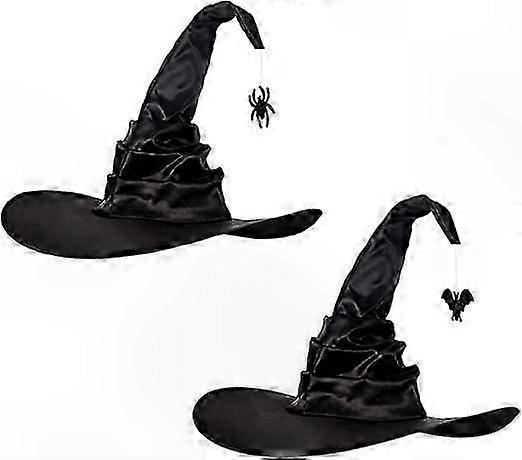 Black Witch Hats with Spider and Bat Decor for Women Adult Cosplay Accessory Halloween Party Fancy Dress Costume Props
