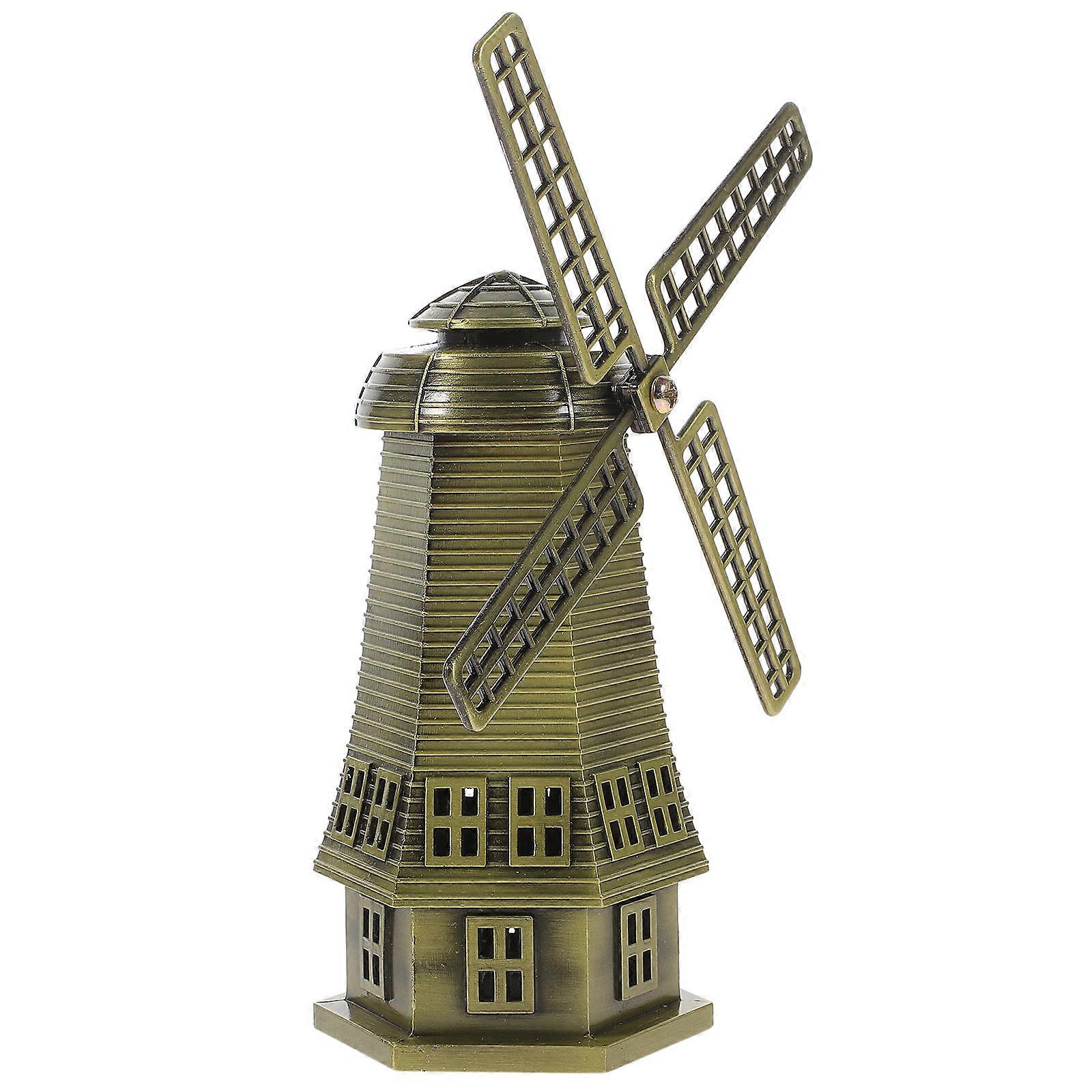 Retro Netherlands Windmill Decor Miniature Alloy Craft for Decoration Dark Green 4 Pieces