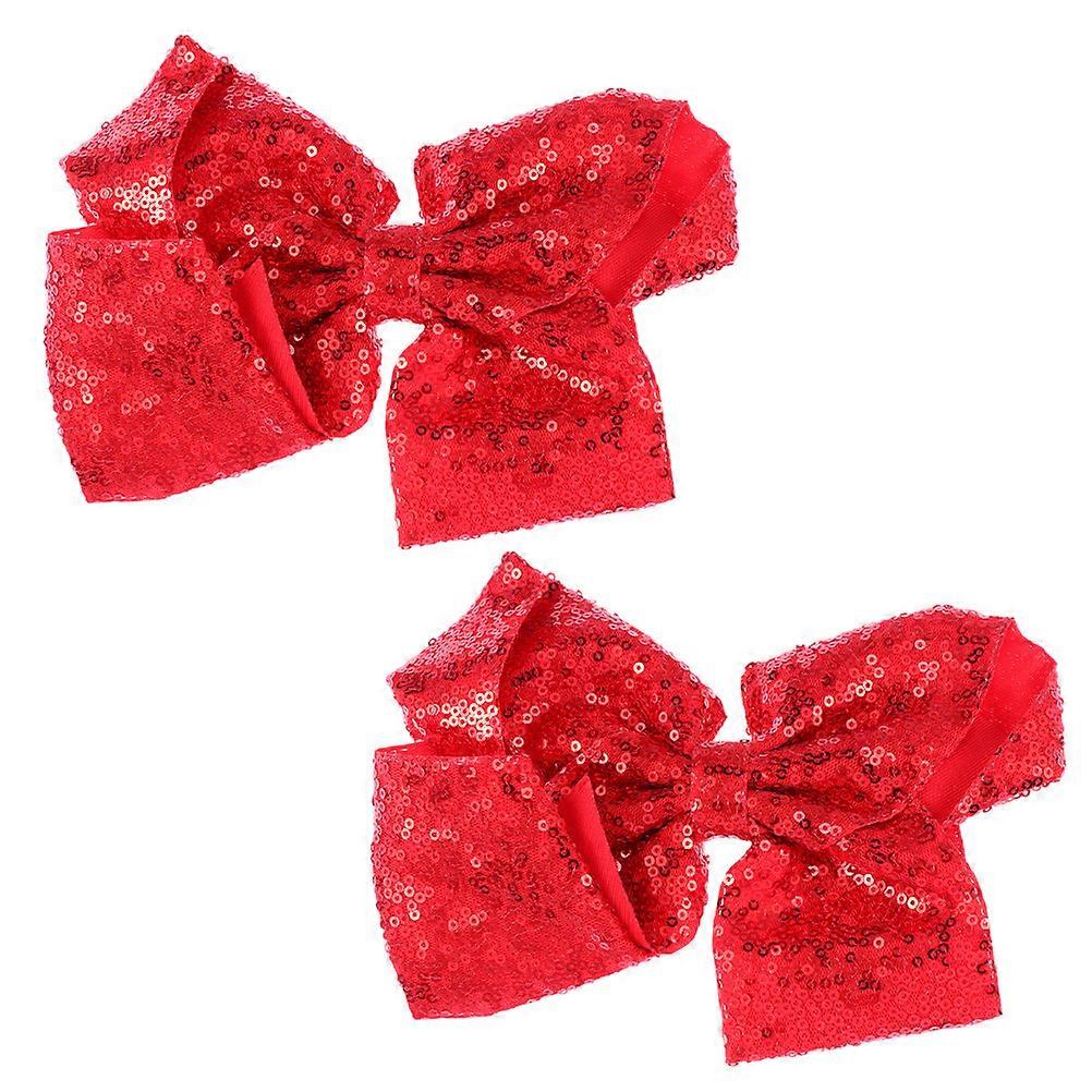 Lovely Bowknot Barrette 2Pcs Red Ribbon Sequin Bowknot Barrettes Ideal for Wearing with Gift-Ready