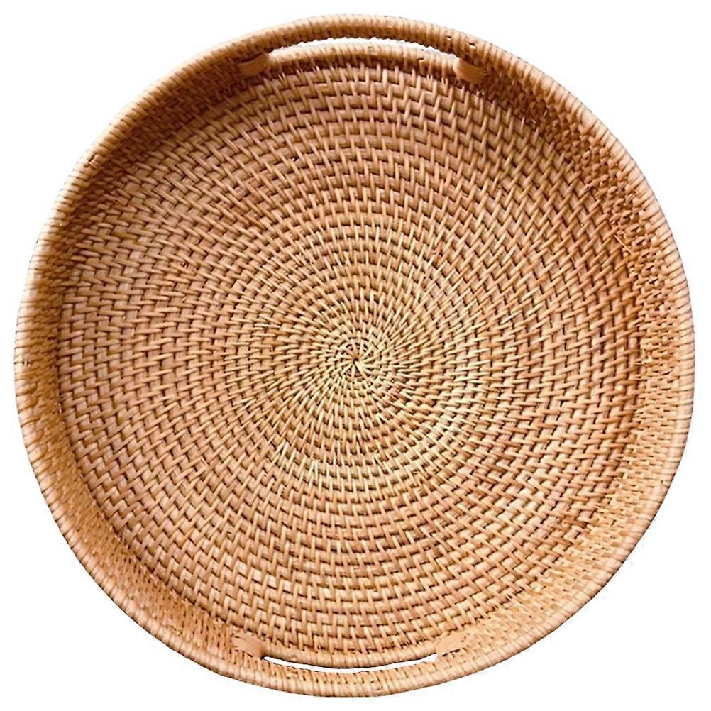 Woven Autumn Rattan Fruit Basket Khaki Handle Rattan Fruit Plate Versatile Storage Option