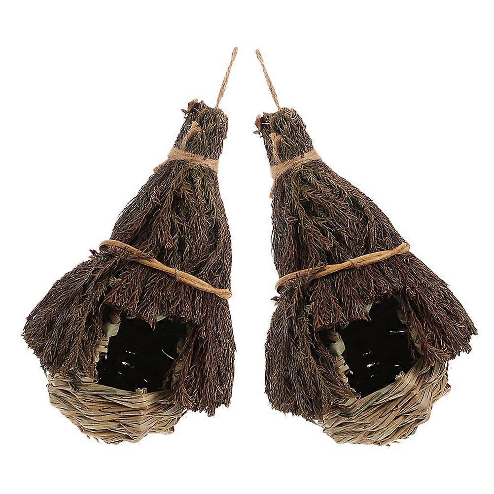 Grass Bird Nest Hand-Woven Hanging Birdhouse for Outdoor Garden 2Pcs