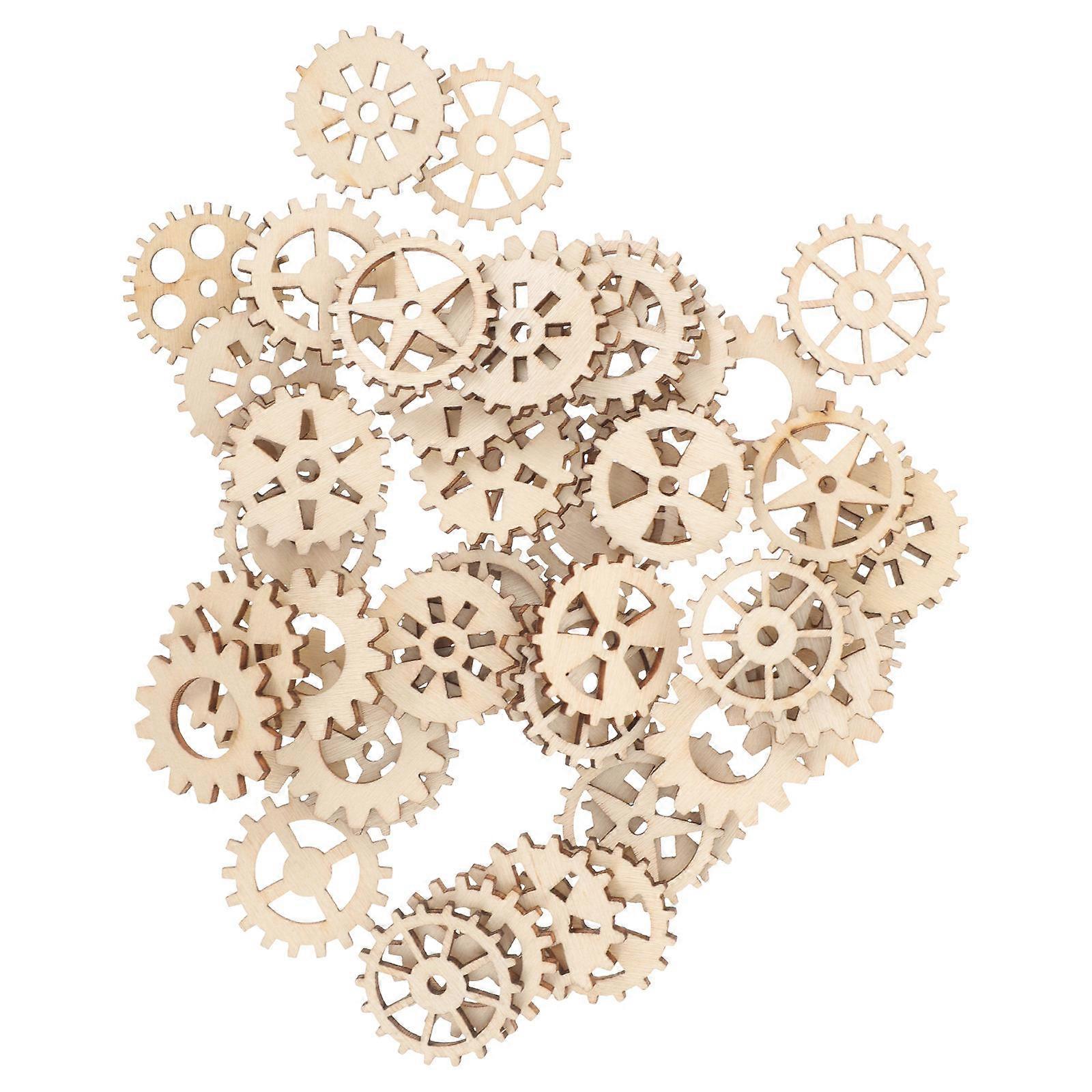 100pcs Wooden Gear Craft Embellishments Gift Tags Wood Ornaments for DIY Toys and Crafts (Approximately 25mm, 50pcs Per Pack)